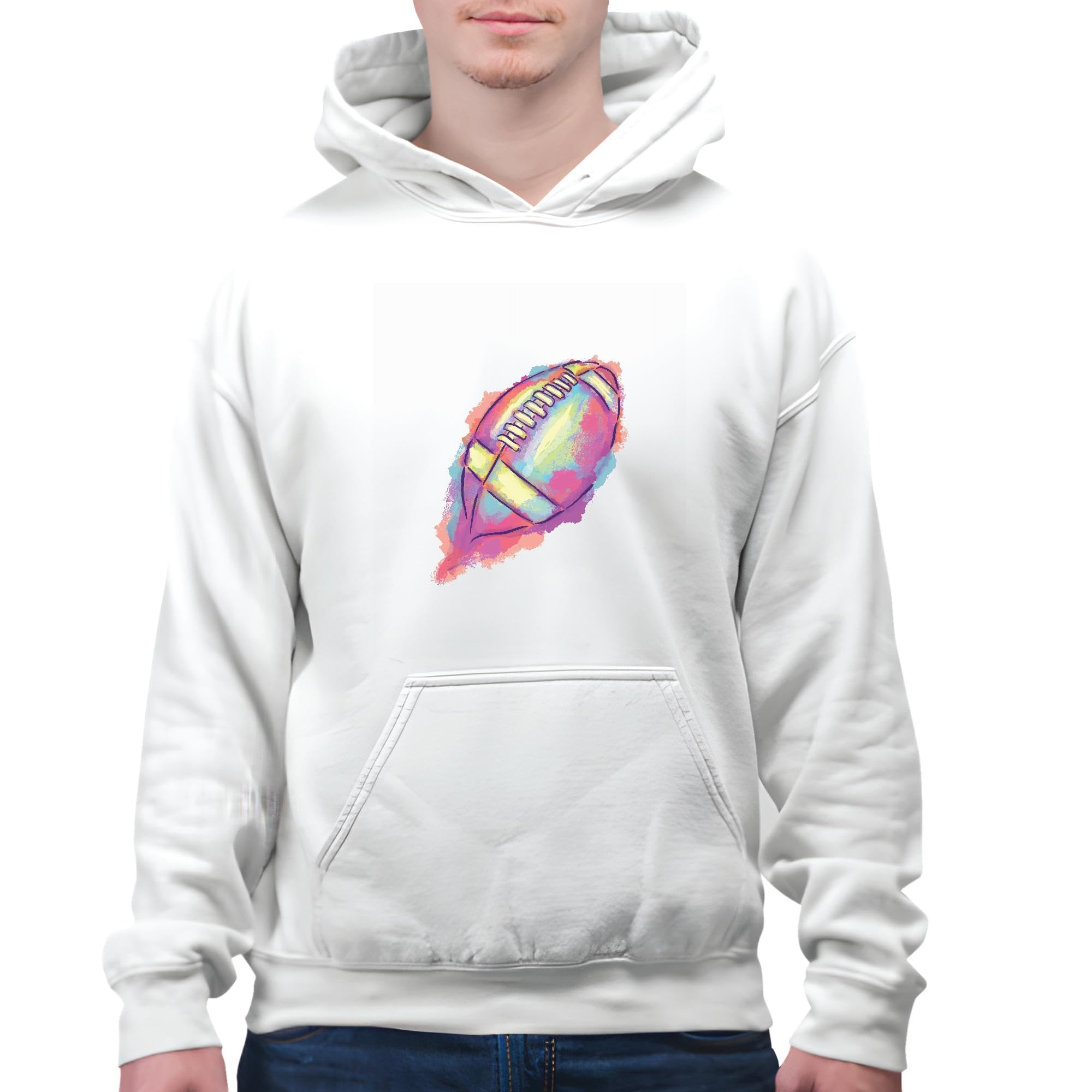 Watercolor Football Gift for American Football Fans Unique Artwork White and Muticolor Unisex Hoodie