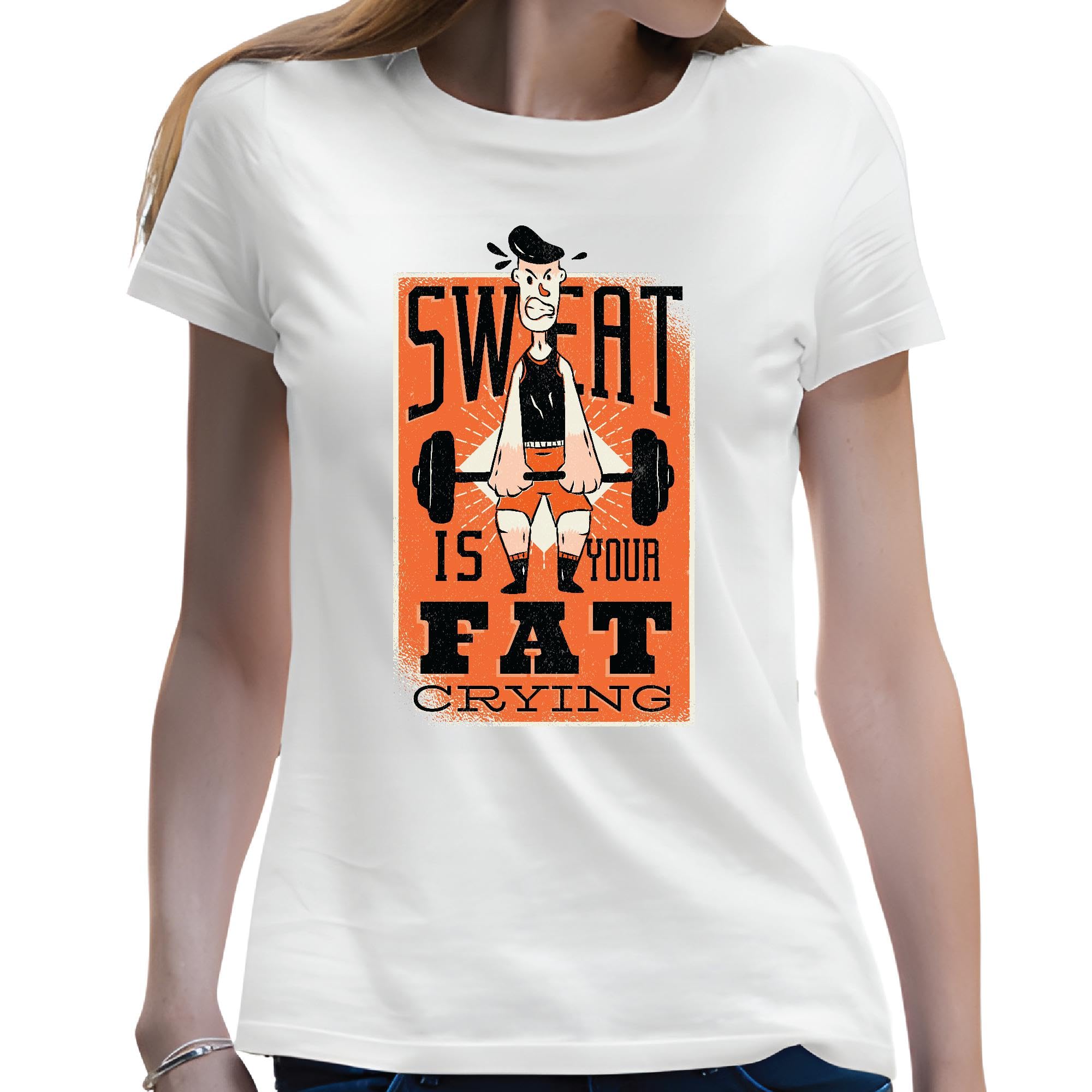 Weightlifting Quote Gift for Fitness Enthusiasts Sweat is Your Fat Men Women White Gray Multicolor T shirt