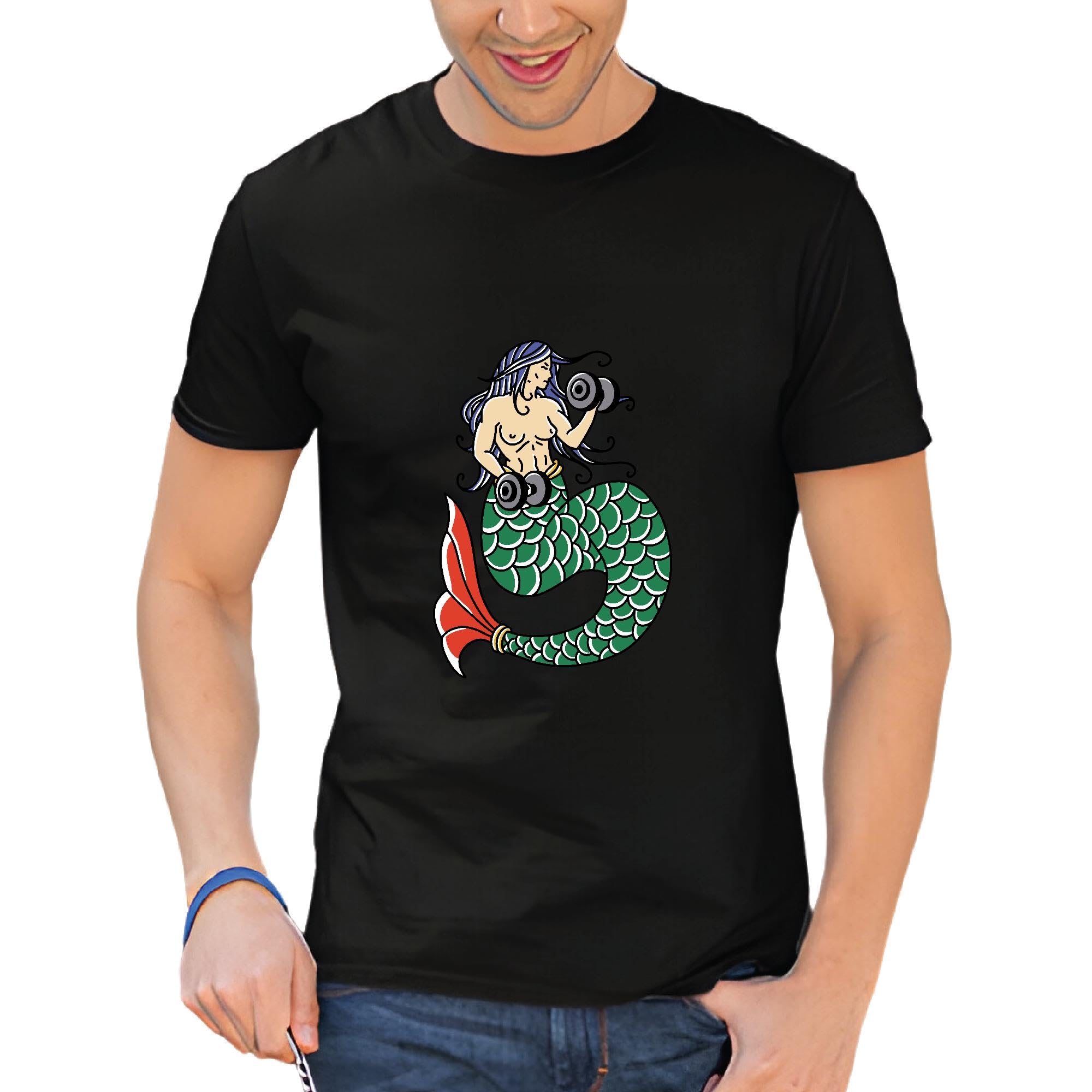 Weightlifting Mermaid Gift for Fitness Lovers Mermaid Lifting Weights Men Women Black Multicolor T shirt