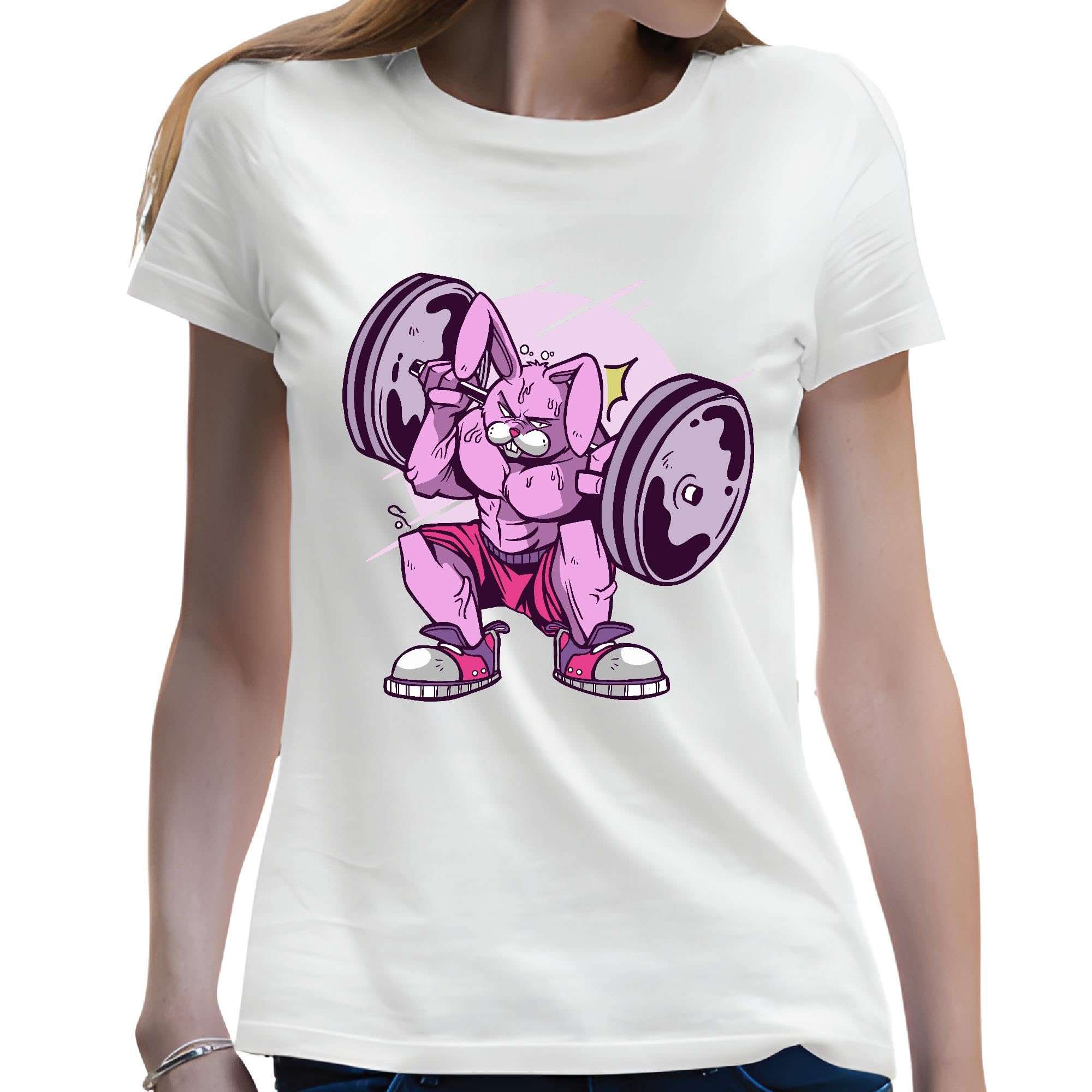 Weightlifting Rabbit Gift for Fitness Lovers Muscular Rabbit Lifting Weights Men Women White Gray Multicolor T shirt