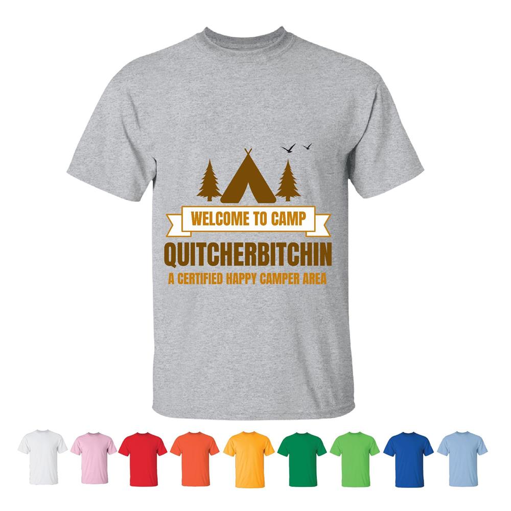 Welcome to Camp Quitcherbitchin funny for Summer Time Vacation at the Camper humor Men Women White Gray T shirt