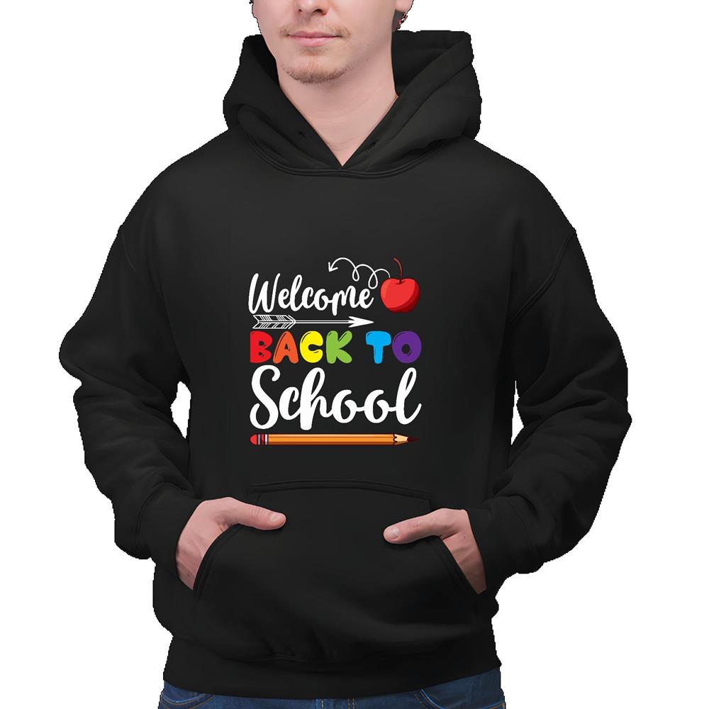 Welcome Back to School first day of School Teachers Students Black and Muticolor Unisex Hoodie