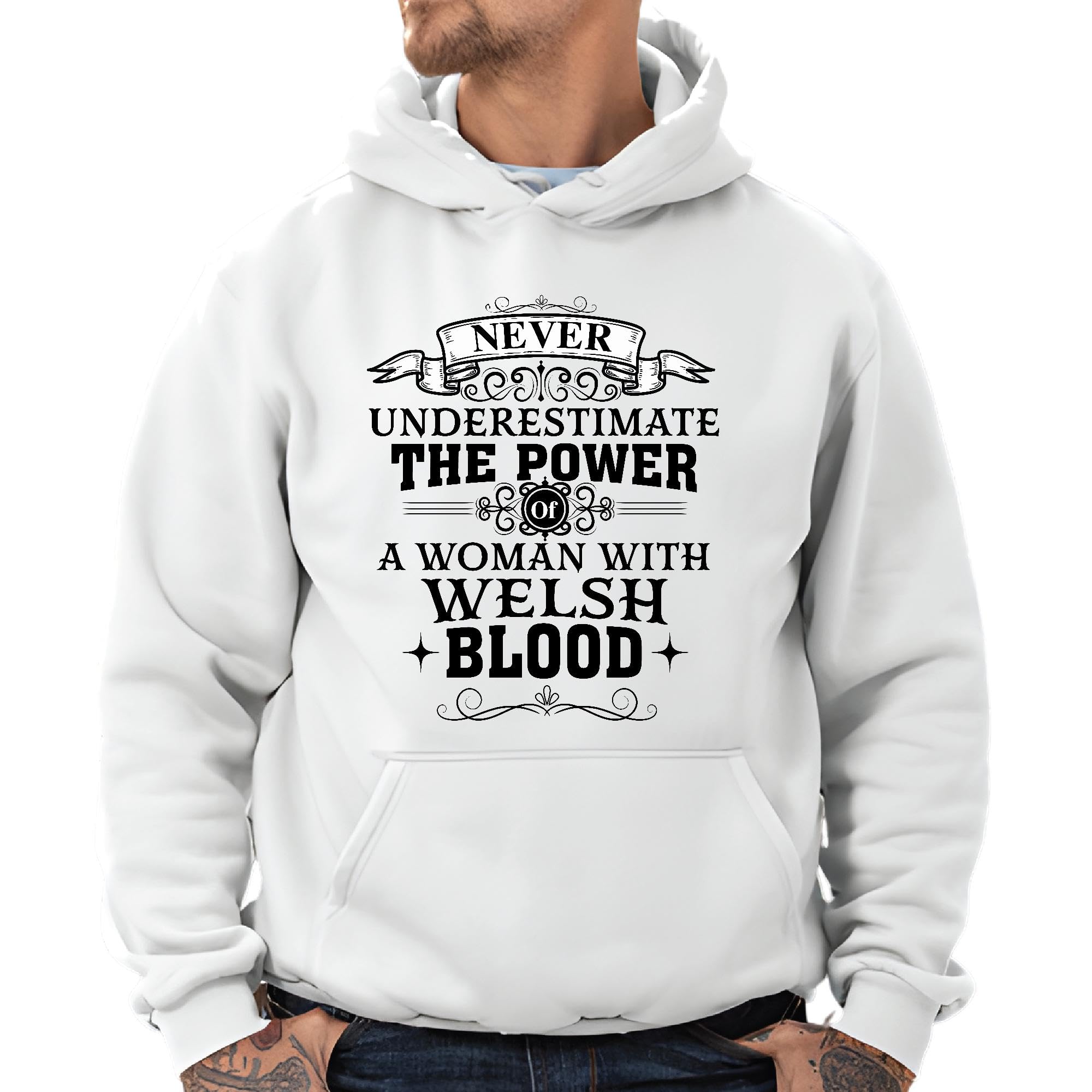 Welsh Encouragement Motivation for WomenNever Underestimate the Power of a Woman Gray and Muticolor Unisex Hoodie