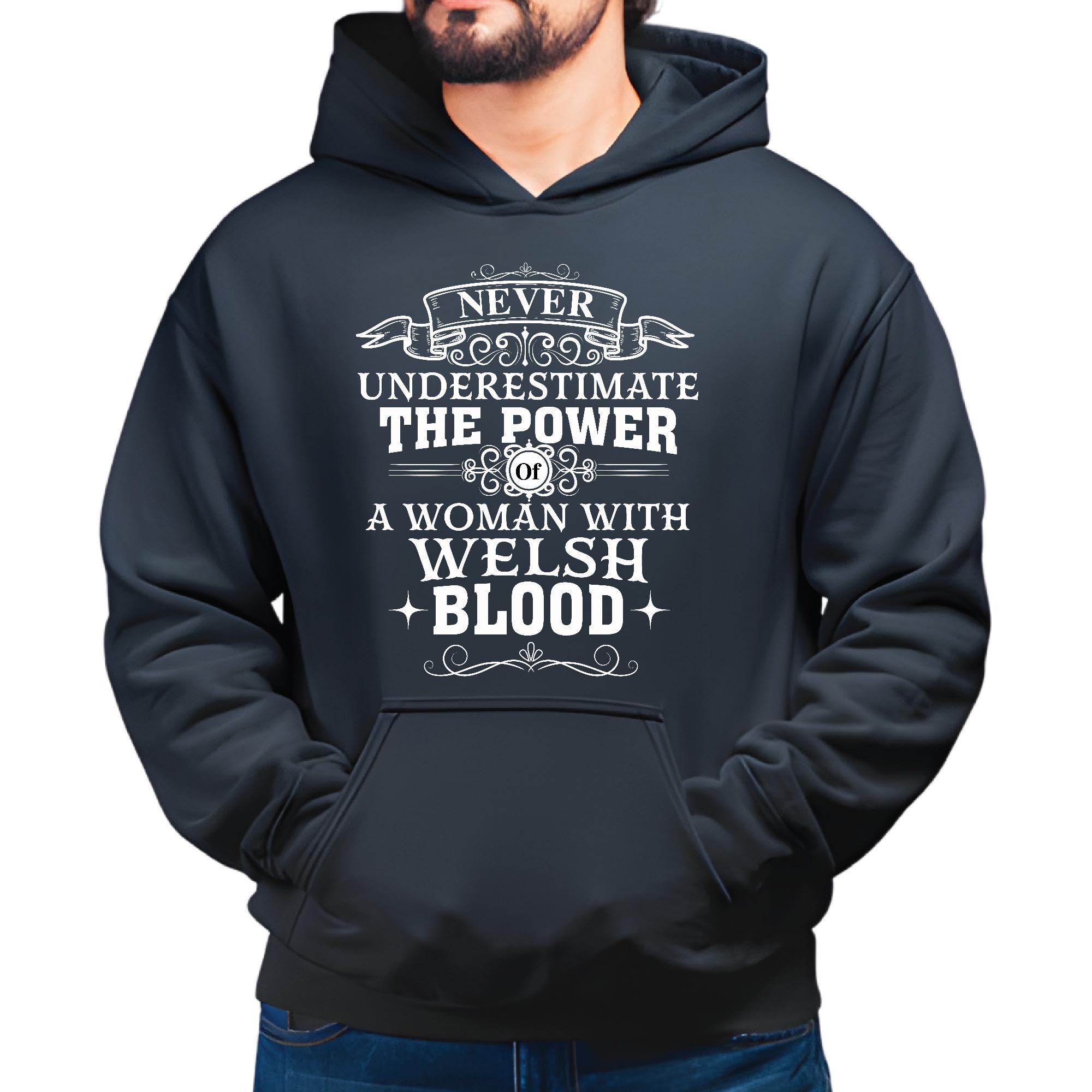 Welsh Encouragement Motivation for WomenNever Underestimate the Power of a Woman Black and Muticolor Unisex Hoodie