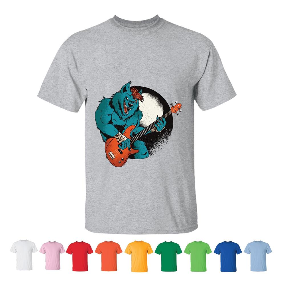 Werewolf Guitarist Gift Cool Blue Monster Rocking Out Design for Music Lovers Men Women White Gray T shirt