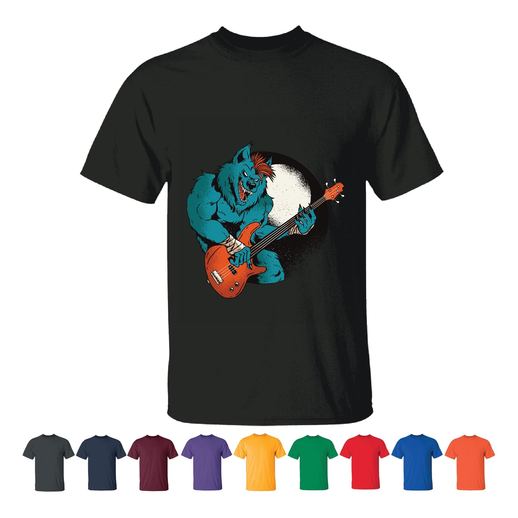 Werewolf Guitarist Gift Cool Blue Monster Rocking Out Design for Music Lovers Men Women Black T shirt