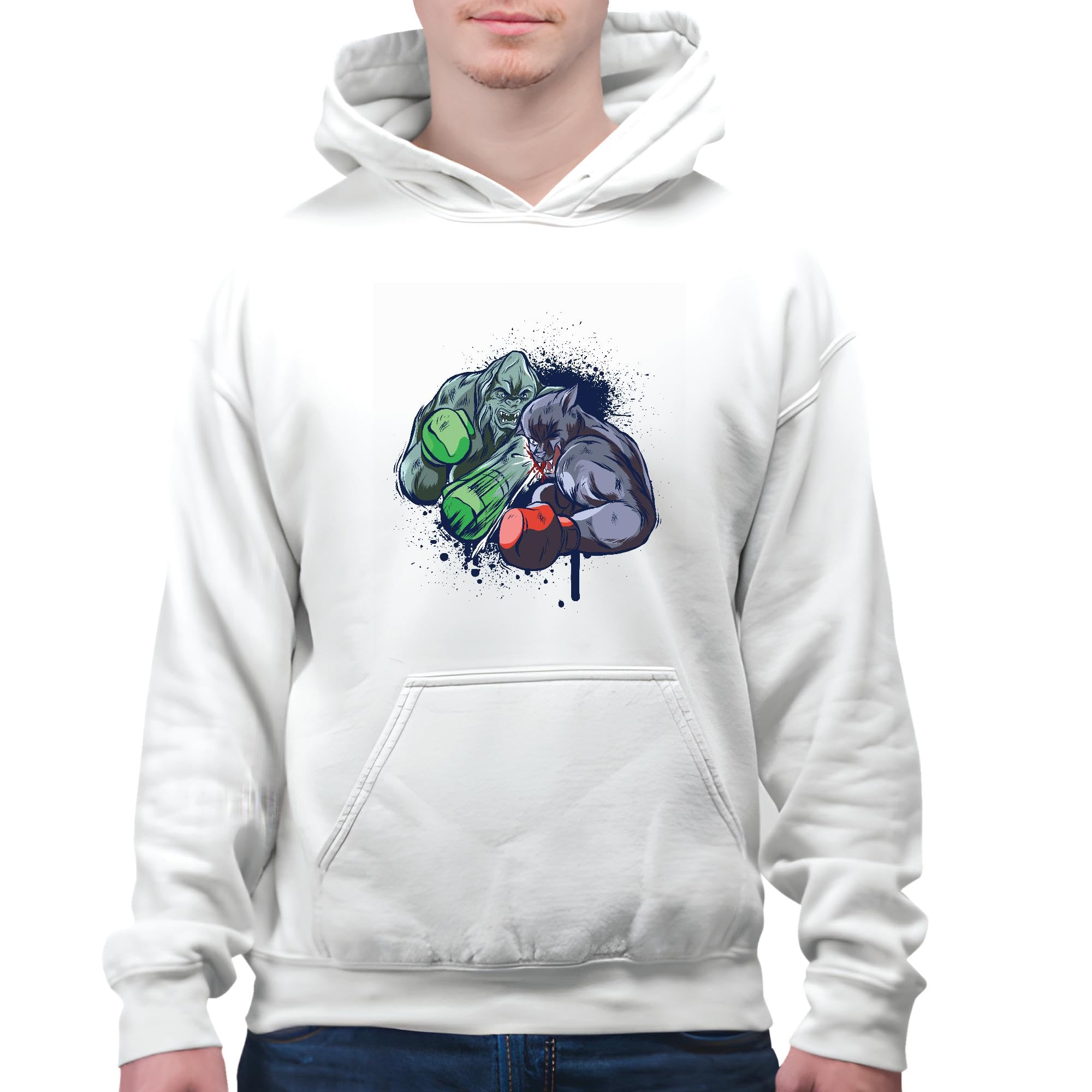 Werewolf Boxing Gift for Kids Fun and Creative Activity White and Muticolor Unisex Hoodie