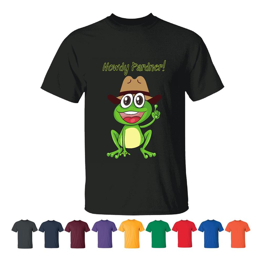Western Style Gift for Greeting Friends Frog Waving Howdy Men Women Black T shirt
