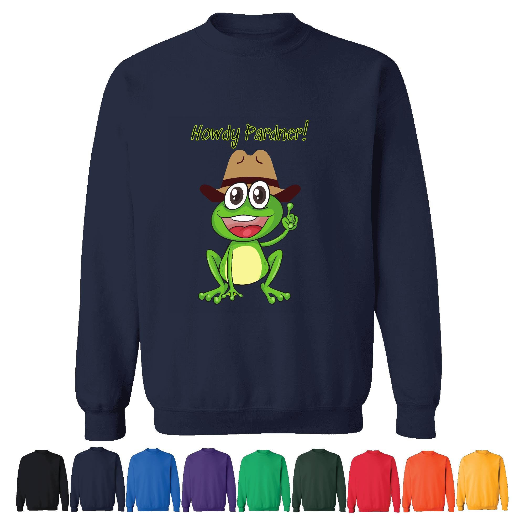 Western Style Gift for Greeting Friends Frog Waving Howdy Navy Muticolor Unisex Sweatshirt