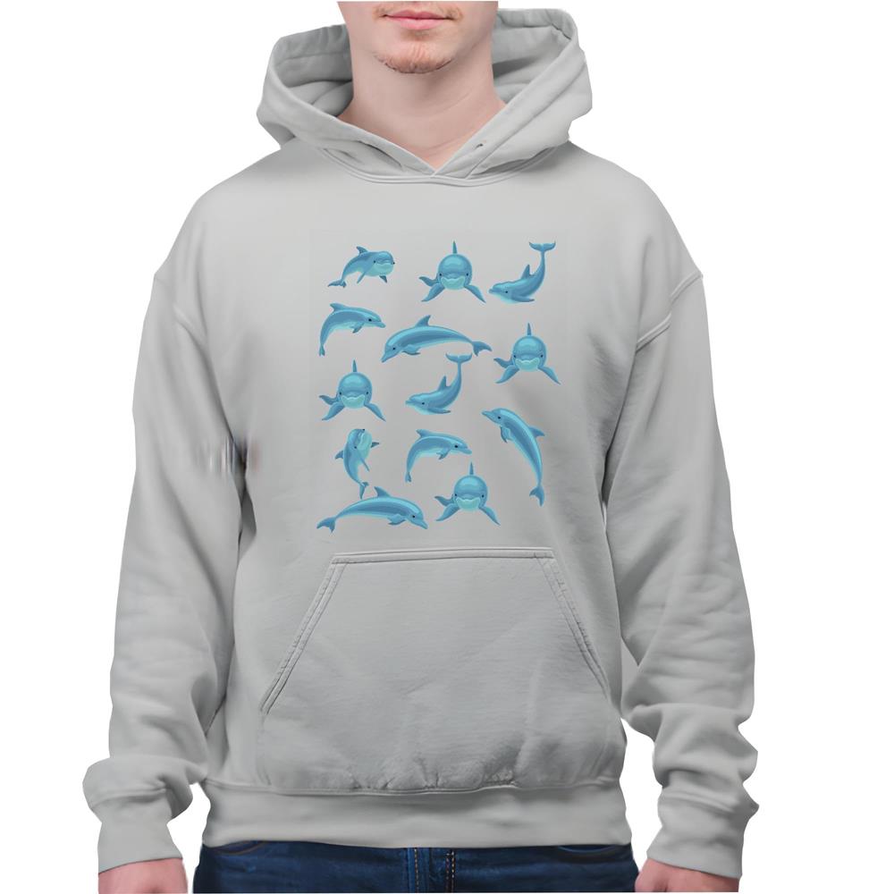 Whales graphic cute for Animal lover Gray and Muticolor Unisex Hoodie