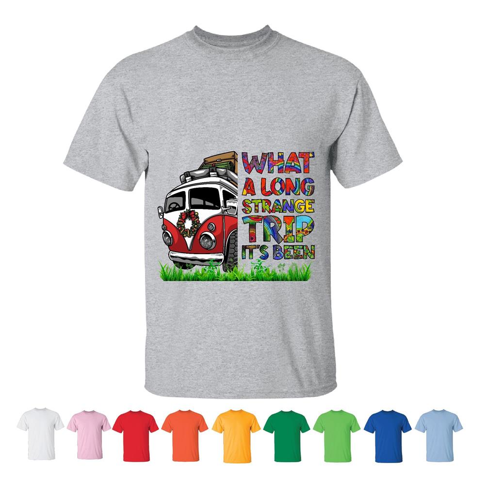 What a long strange Trip it is been funny for Camping Camper Travel lover Hippi Culture Men Women White Gray T shirt
