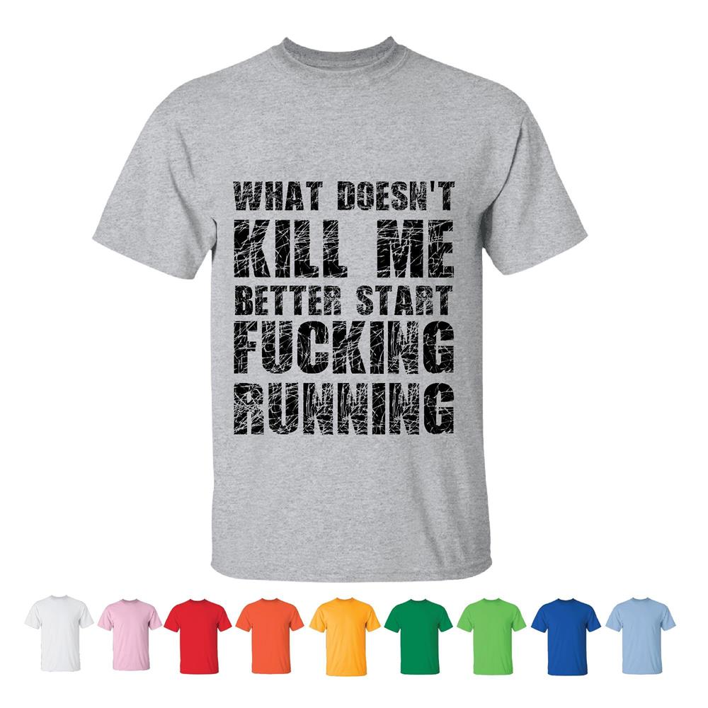 What does not kill will me better start F Running funny threaten quote Men Women White Gray T shirt