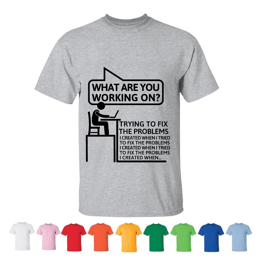 What are you working on trying to fix a problem Codes Programmer Coder Software Engineer Men Women White Gray T shirt