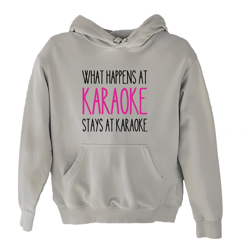 What happens at Karaoke funny for Karaoke lover White and Muticolor Unisex Hoodie