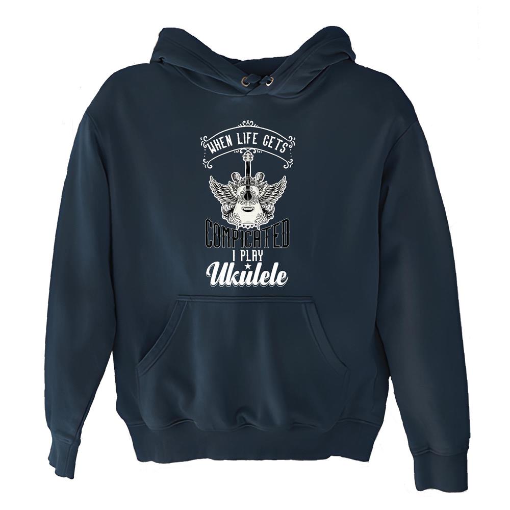 When Life gets complicated I play Ukulele funny for Ukulele player Navy and Muticolor Unisex Hoodie