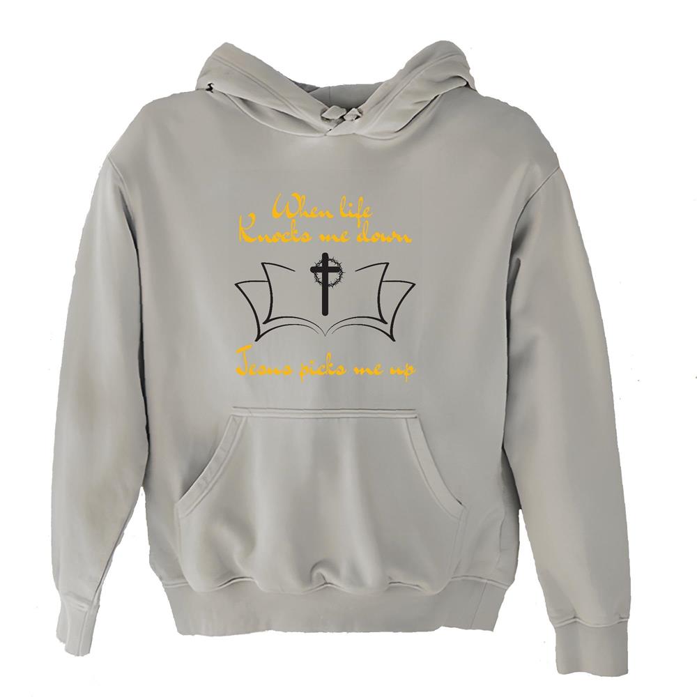 When life knock me down Jesus pick me up for Jesus lover Gray and Muticolor Unisex Hoodie