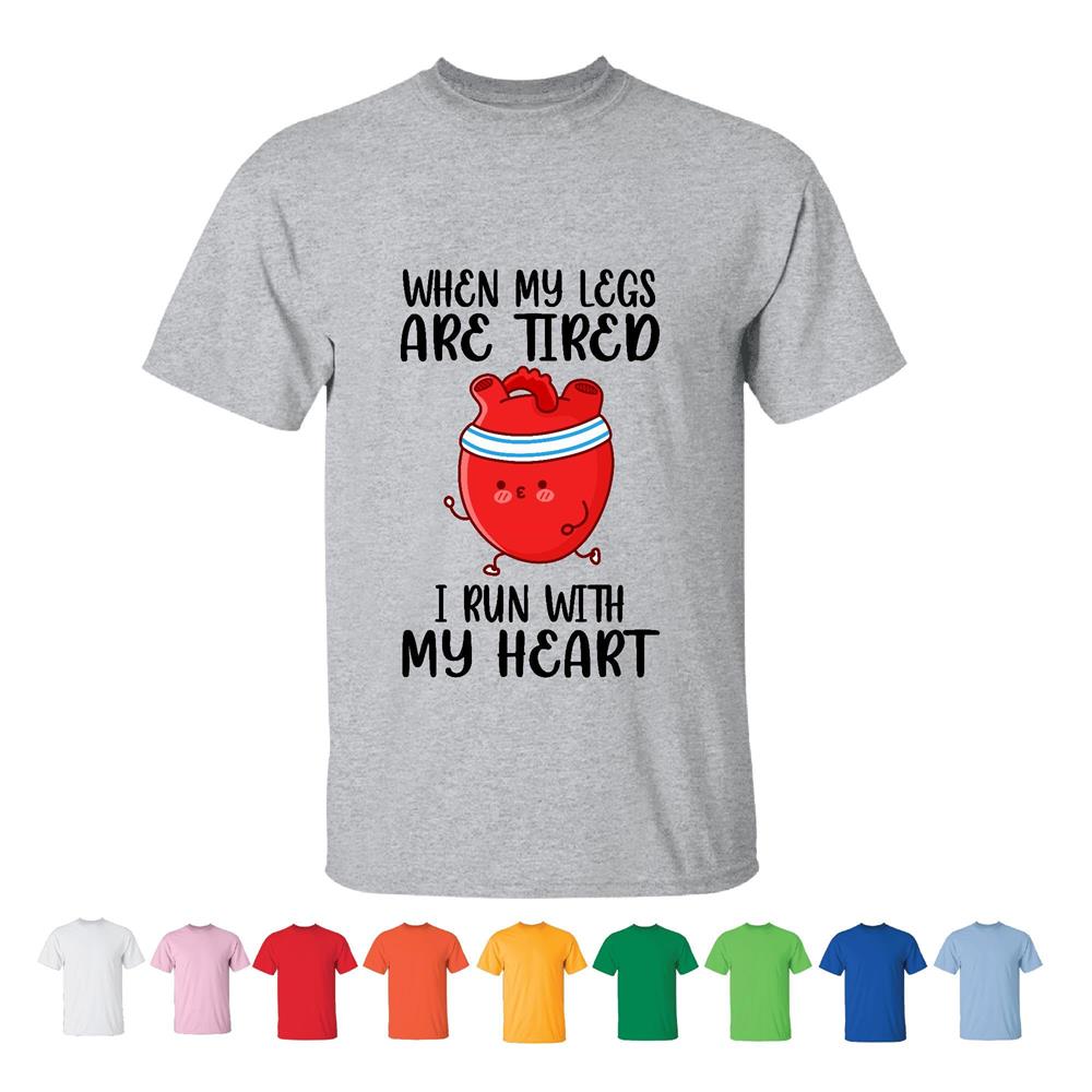 When my Legs are tired I run with my heart long Distance funny for Running Marathon Runner Men Women White Gray T shirt