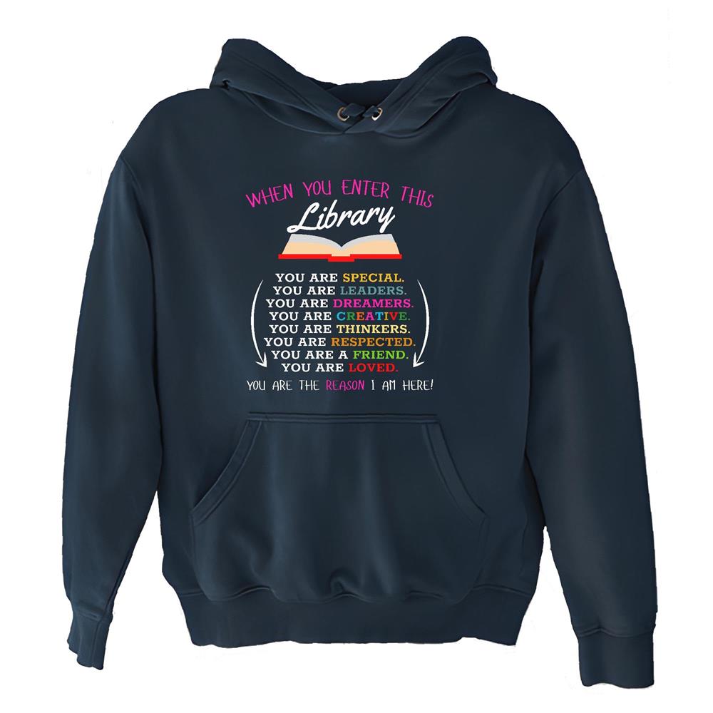 When you enter this Library for Reader Bookworm Reader Book Lover Navy and Muticolor Unisex Hoodie