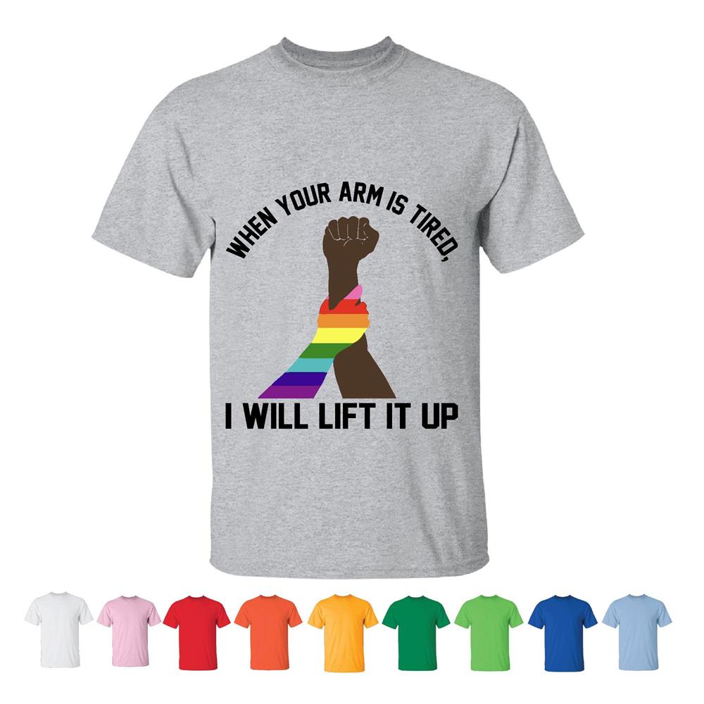 When your arm is tired it up Black pride Feminism LGBTQ fight for Human rights Men Women White Gray T shirt