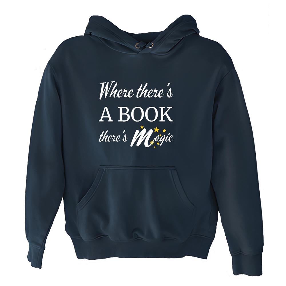 Where theres A Book theres Magic for Bookworm Reader Book Lover Navy and Muticolor Unisex Hoodie
