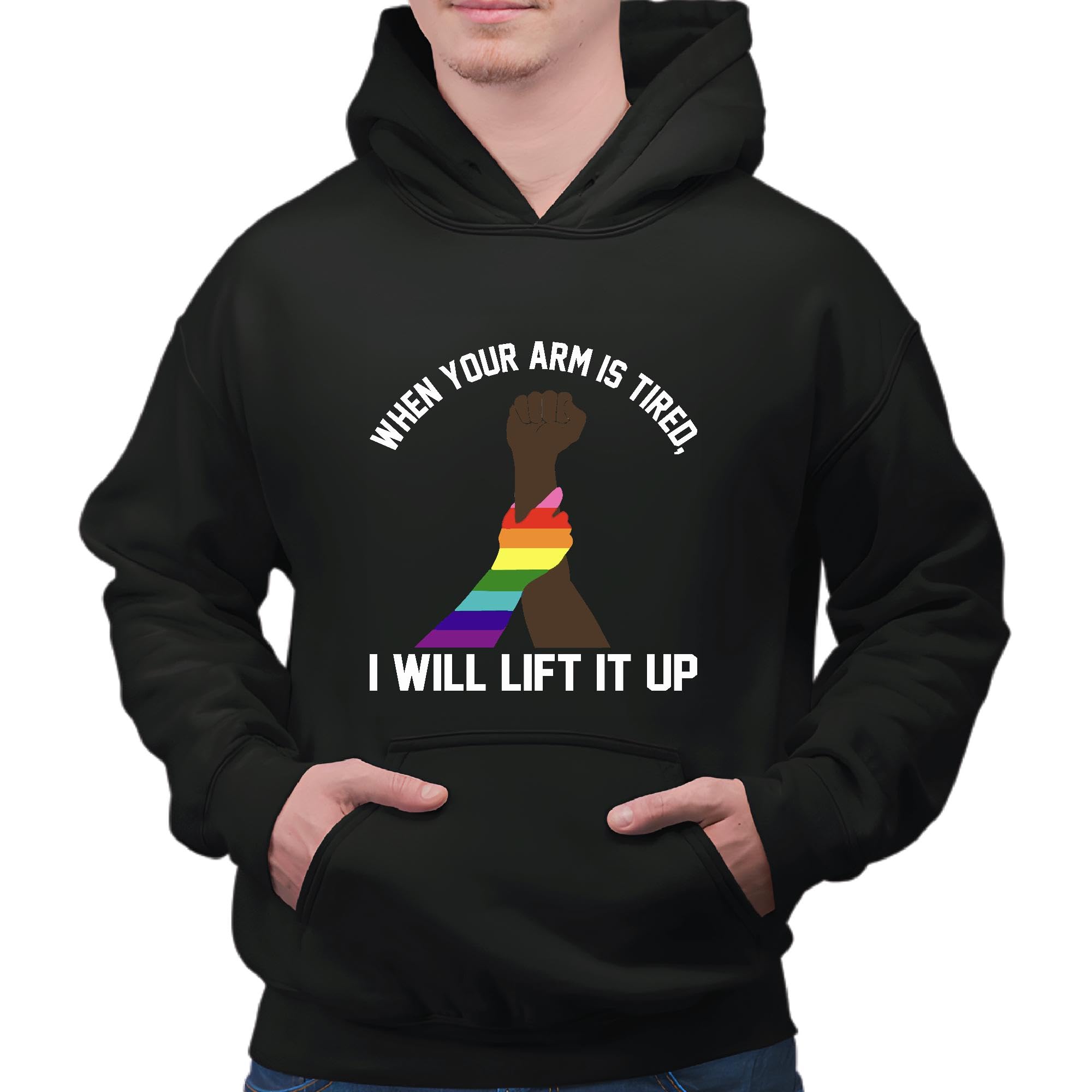 When your arm is tired it up Black pride Feminism LGBTQ fight for Human rights Black and Muticolor Unisex Hoodie