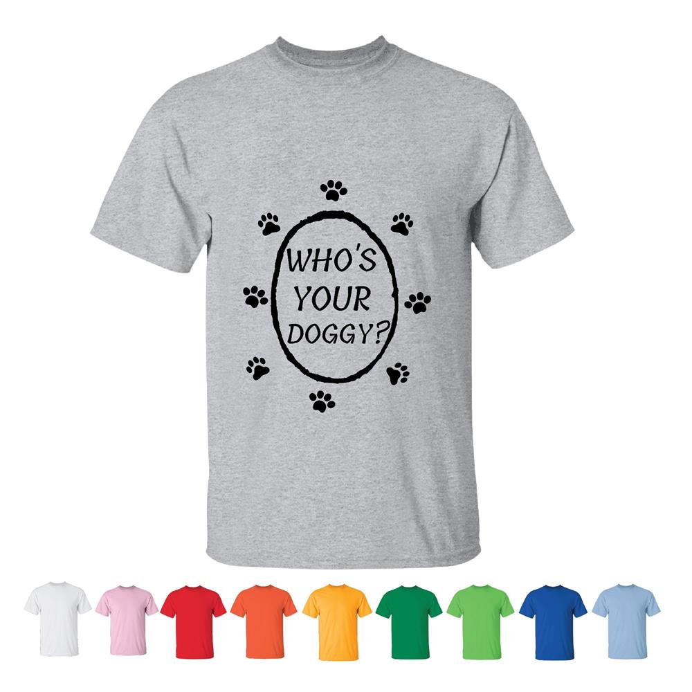 Who Your Doggy for Dog Owners Pet Dog Lovers Novelty Present Men Women White Gray T shirt