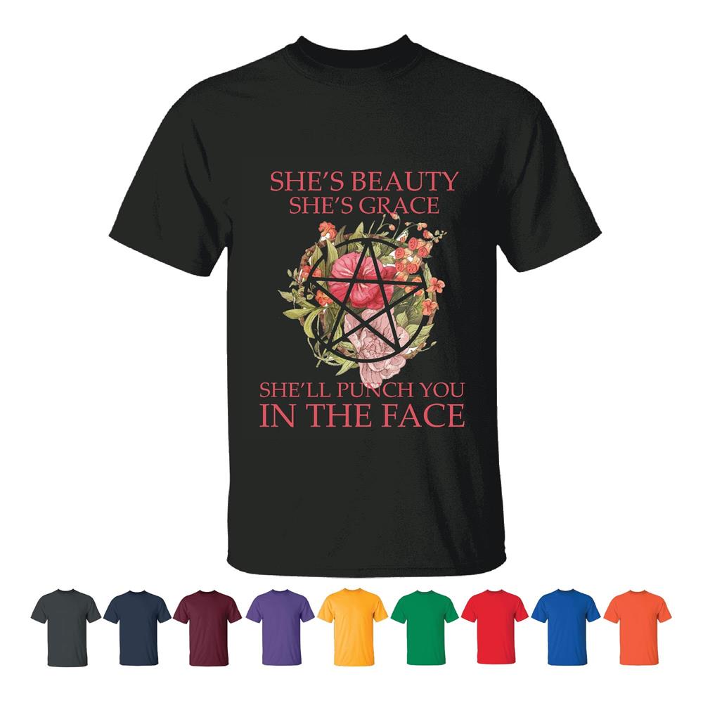 Wiccan Witch Symbol Flower Funny Gift for She Beauty She Grace Fans Men Women Black T shirt