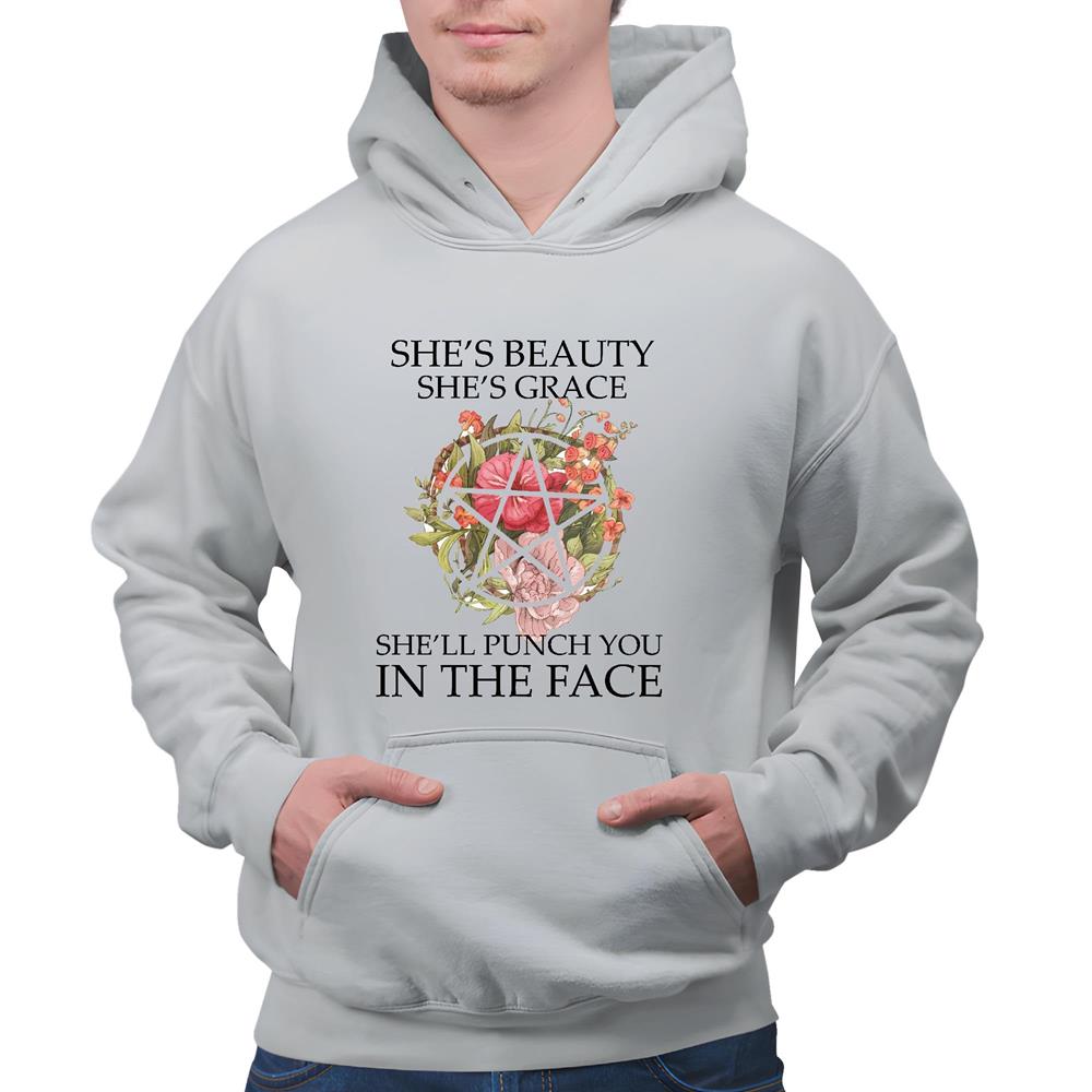 Wiccan Witch Symbol Flower Funny Gift for She Beauty She Grace Fans Gray and Muticolor Unisex Hoodie