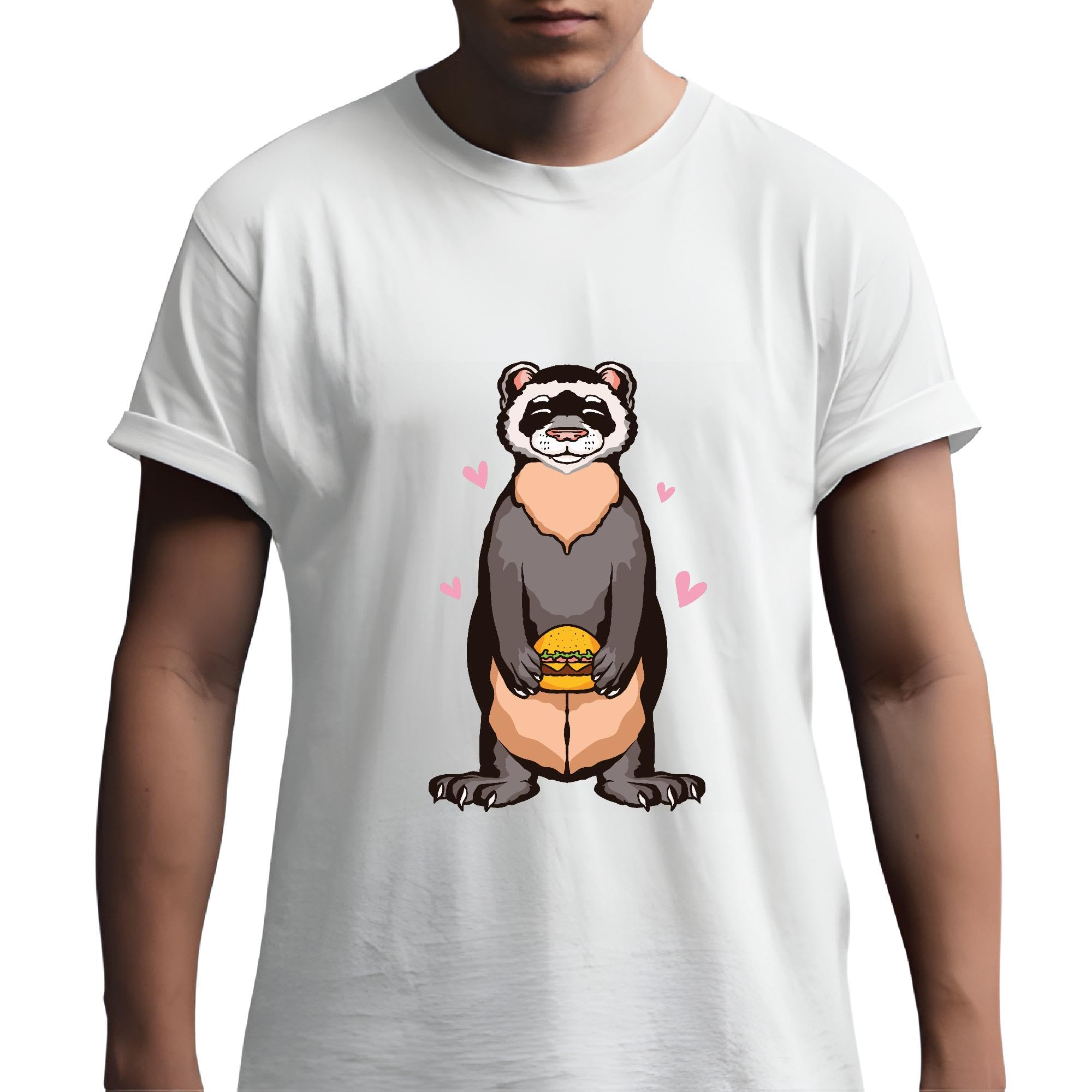 Wild Hamburger Ferret Gift for Kids and Adults Burger Holding Plush Toy Men Women White Gray Multicolor T shirt