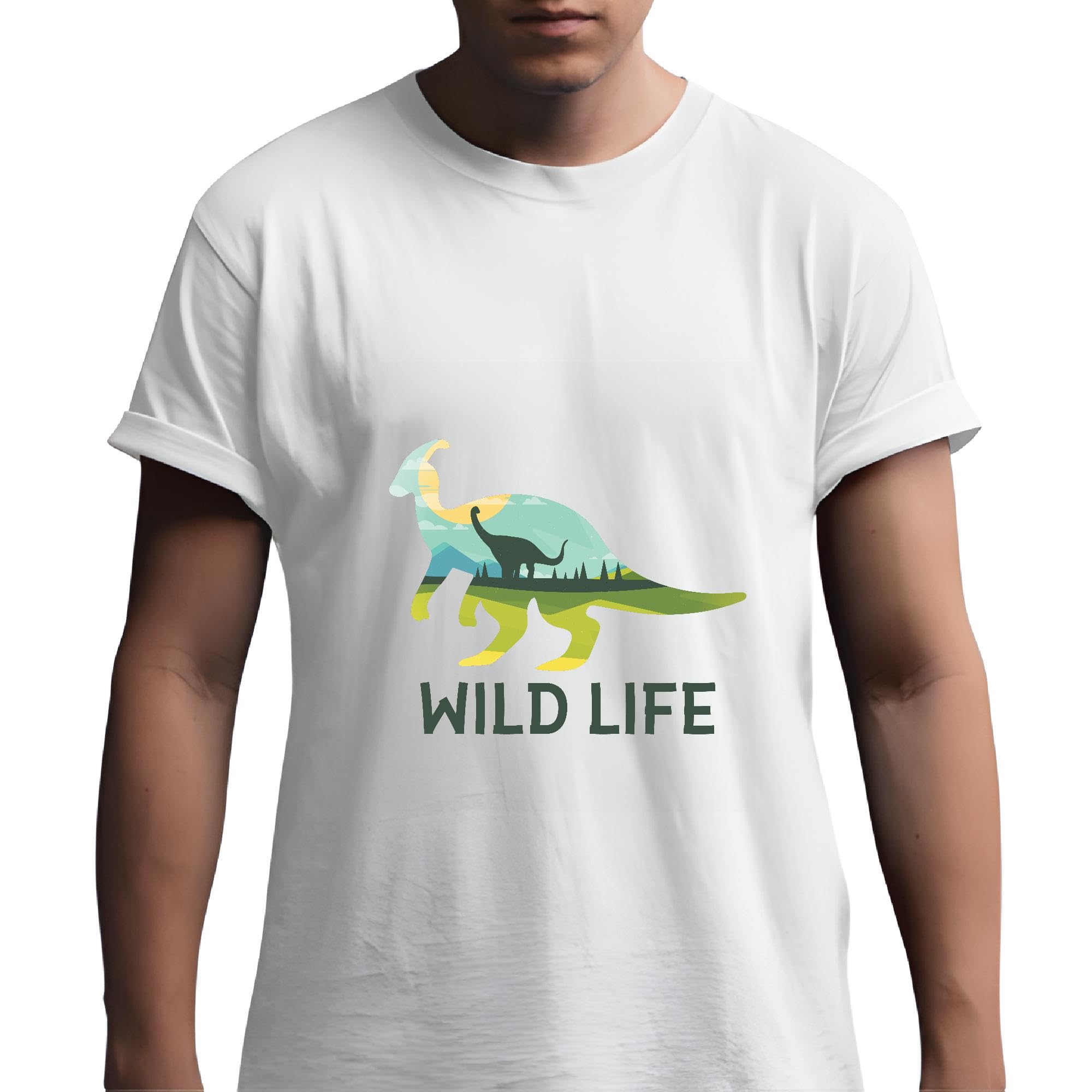Wildlife Dinosaur Landscape Illustration Gift for Kids and Adults Men Women White Gray Multicolor T shirt