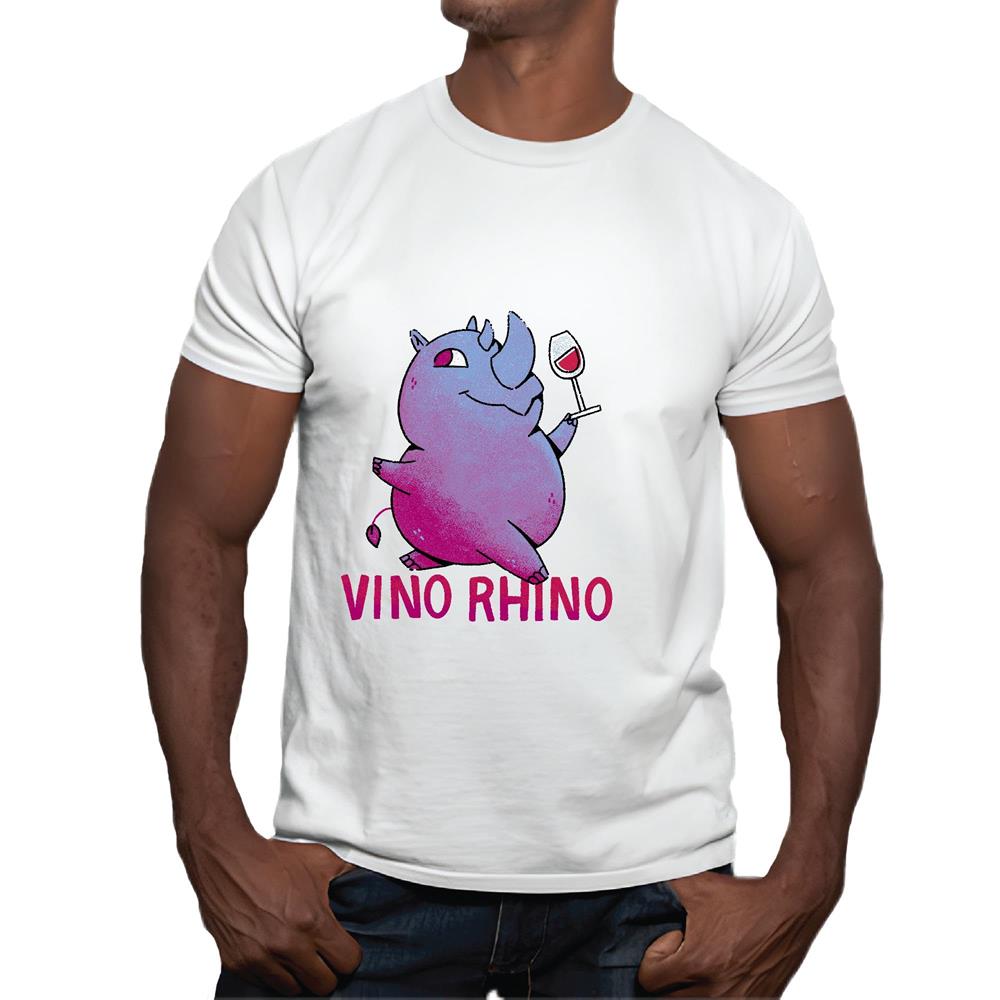 Wine Lover Gift Cartoon Style Vino Rhino Wine Quote Men Women White Gray Multicolor T shirt