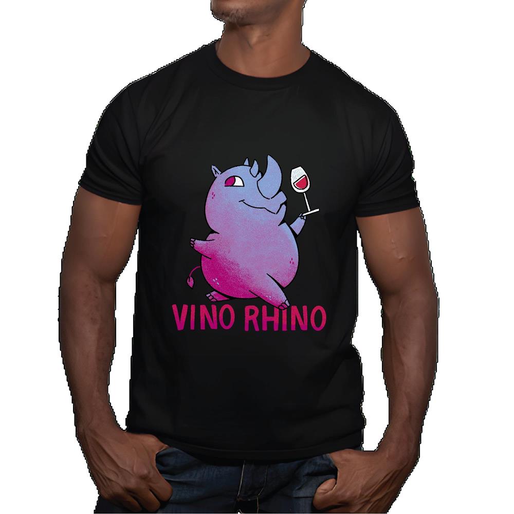 Wine Lover Gift Cartoon Style Vino Rhino Wine Quote Men Women Black Multicolor T shirt