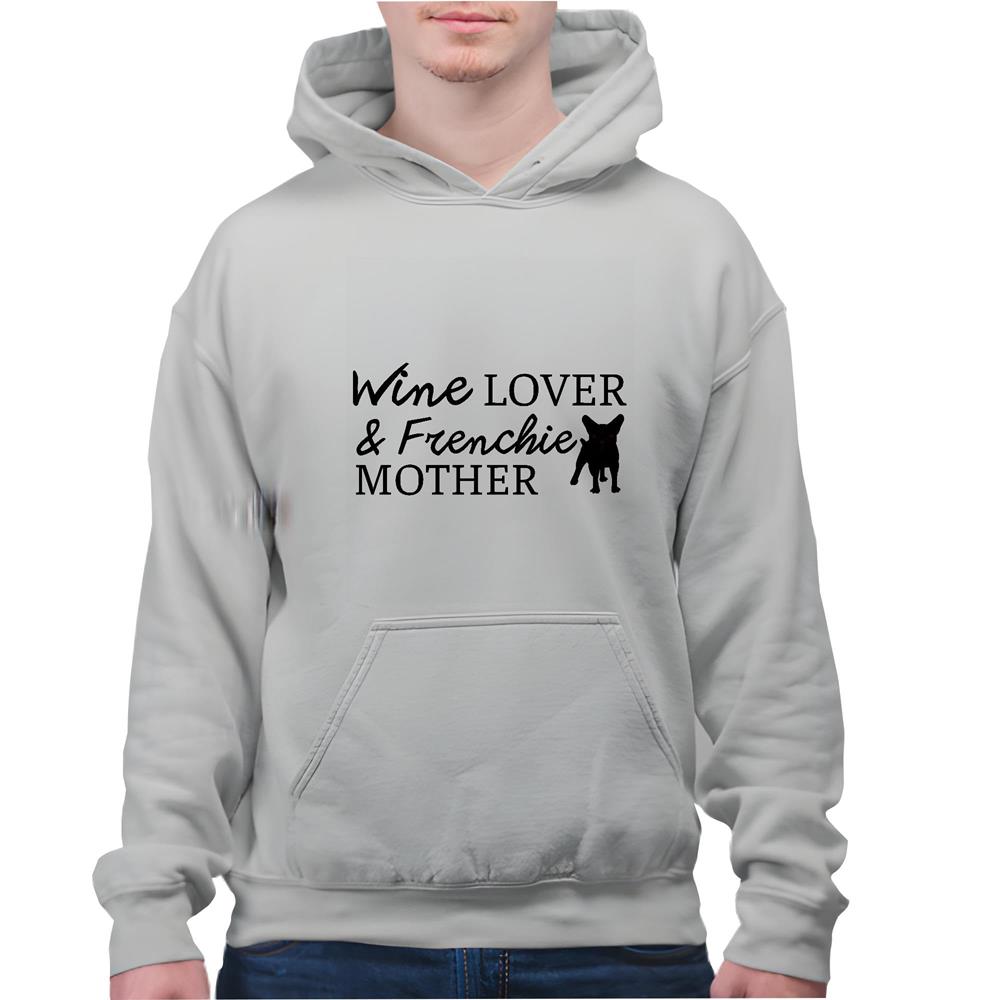 Wine lover and Frenchie funny for Dog lover Gray and Muticolor Unisex Hoodie
