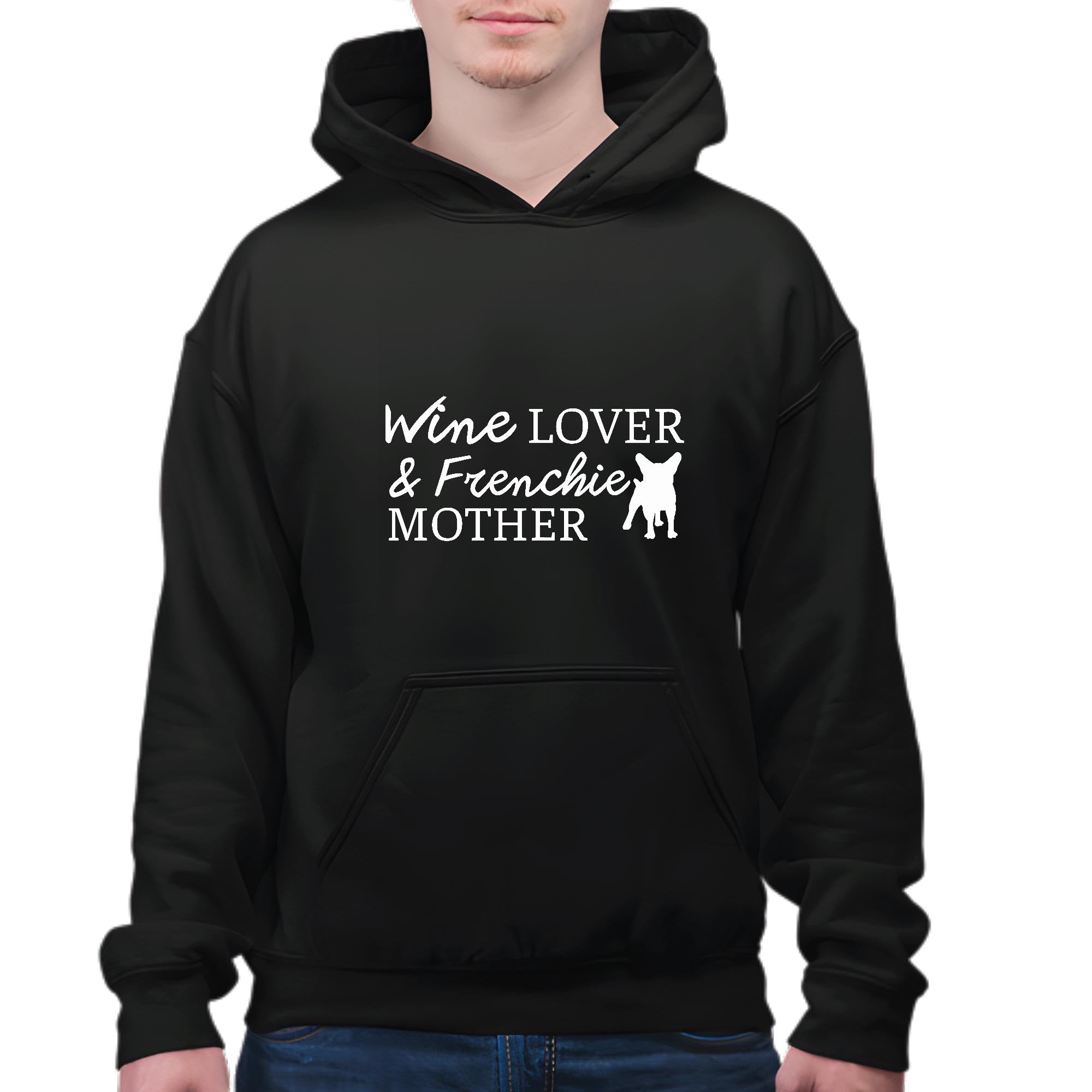Wine lover and Frenchie funny for Dog lover Black and Muticolor Unisex Hoodie