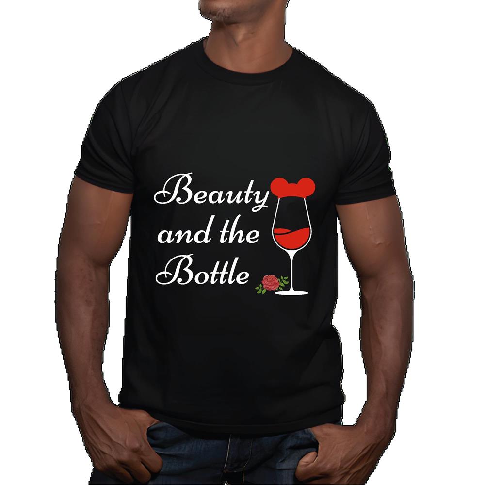 Wine Lover Gift Idea Beauty and the Bottle for Alcohol Addicts Men Women Black Multicolor T shirt
