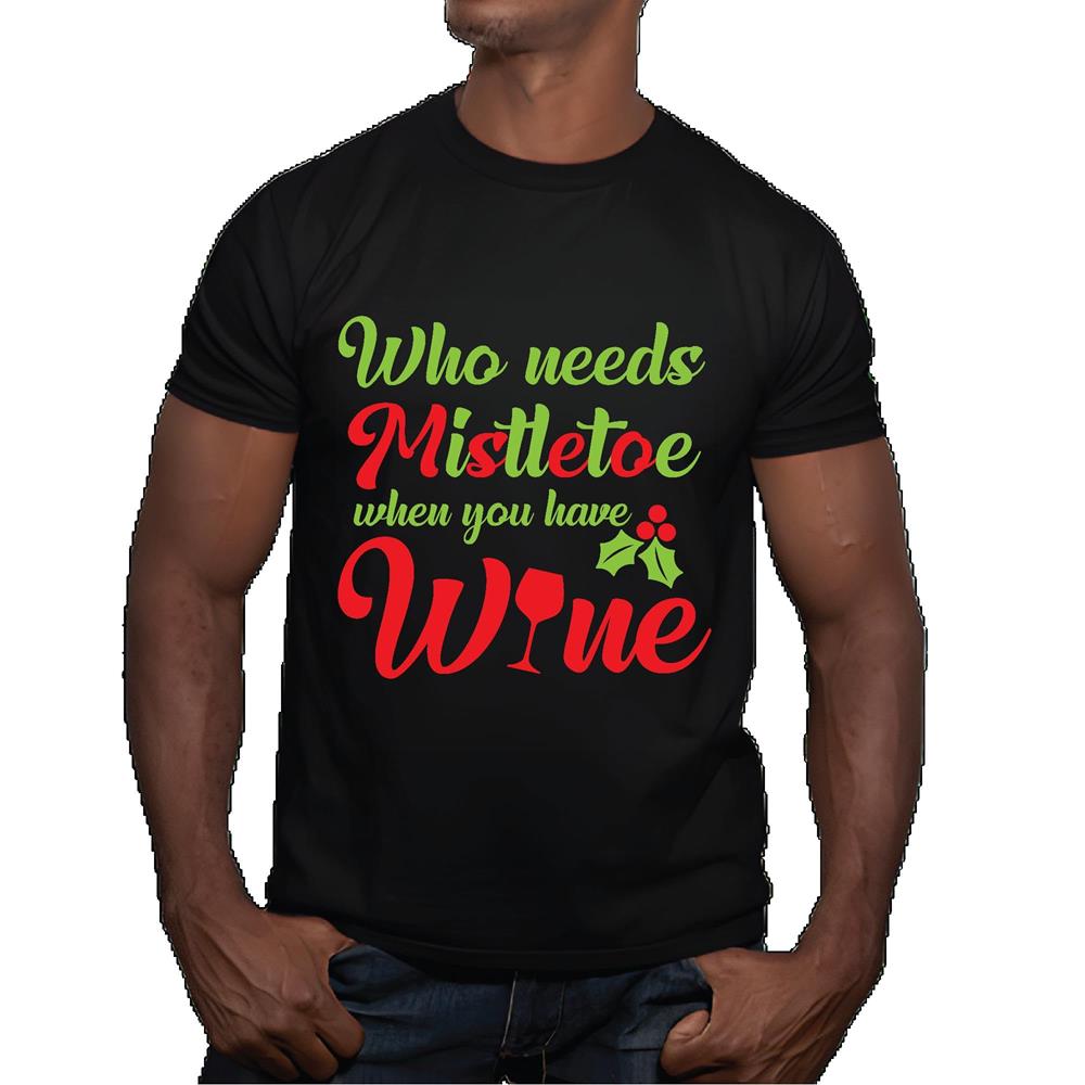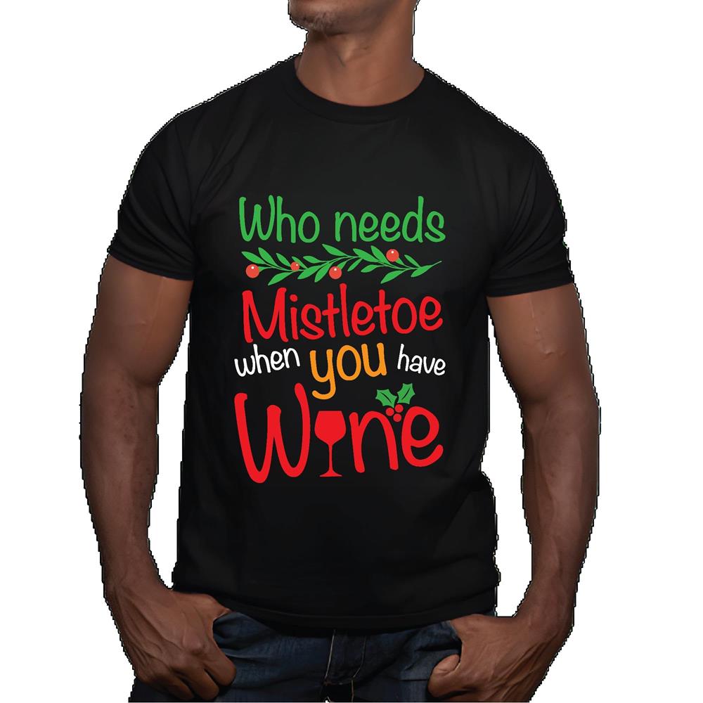 Wine Lover T shirt Gift Idea Who Needs Mistletoe When You Have Wine Men Women Black Multicolor T shirt