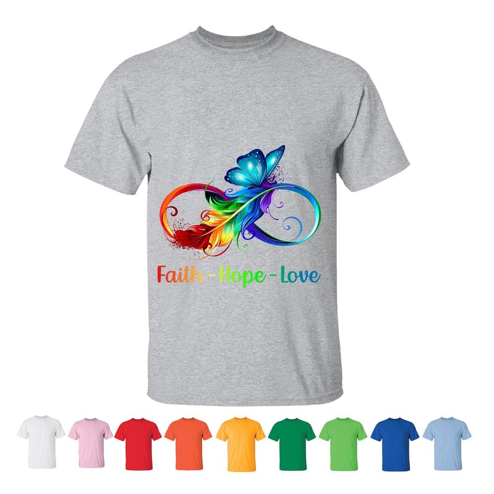 Butterfly LGBT Rainbow Faith Hope love support Equality Human Rights Men Women White Gray T shirt