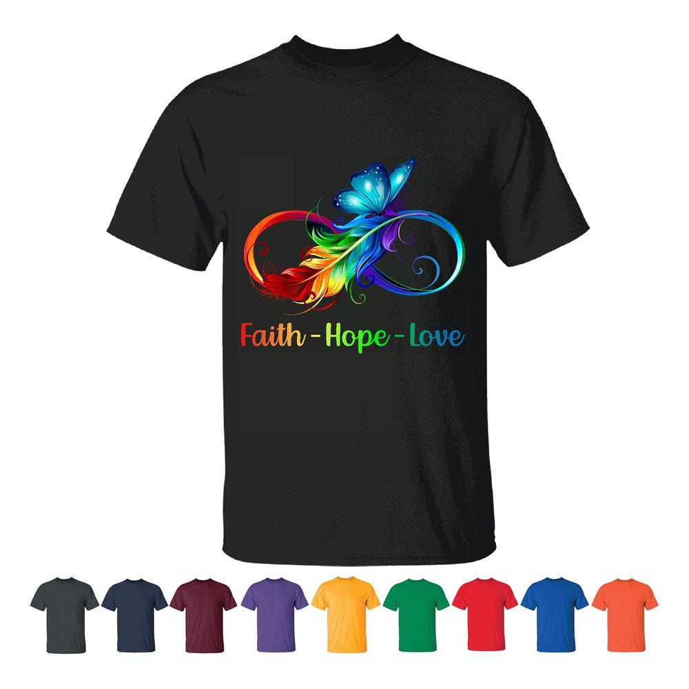 Butterfly LGBT Rainbow Faith Hope love support Equality Human Rights Men Women Black T shirt