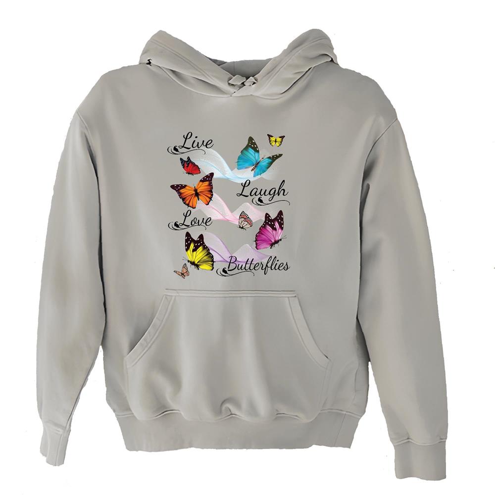 Butterfly Live Laugh Love Gray and Muticolor Unisex Hoodie
