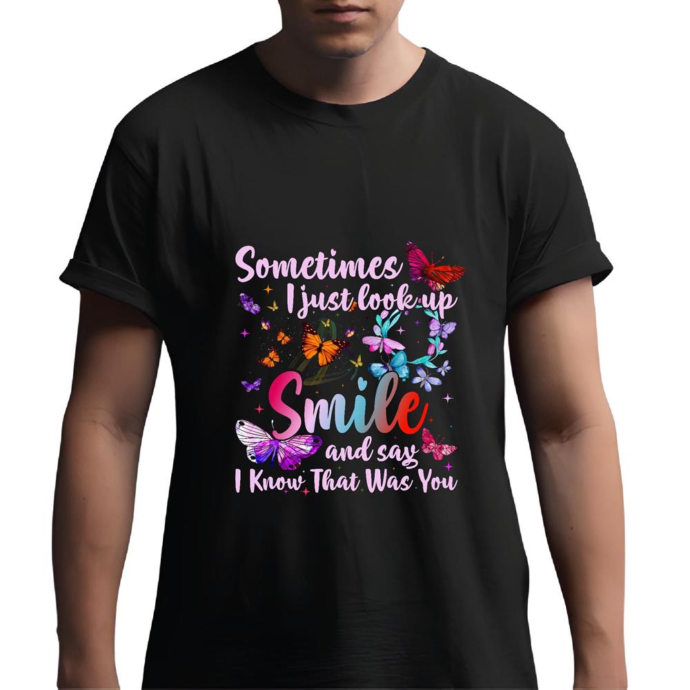 Butterfly Look Up Smile Gift for Dad Mom Son Brother Daughter in Family Men Women Black Multicolor T shirt