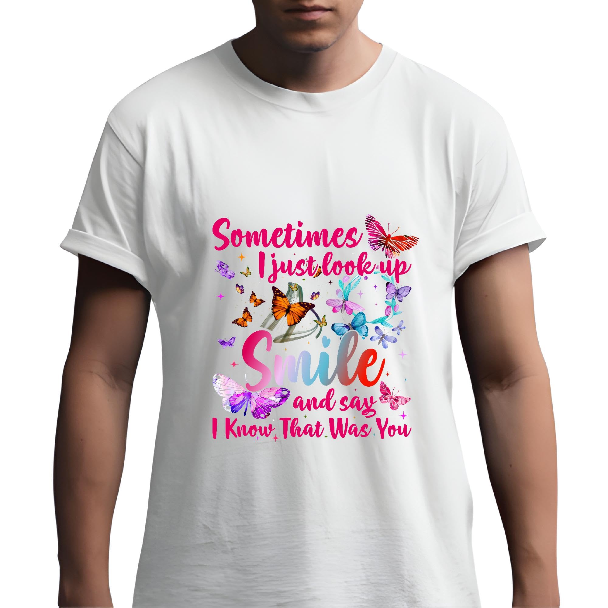 Butterfly Look Up Smile Gift for Dad Mom Son Brother Daughter in Family Men Women White Gray Multicolor T shirt