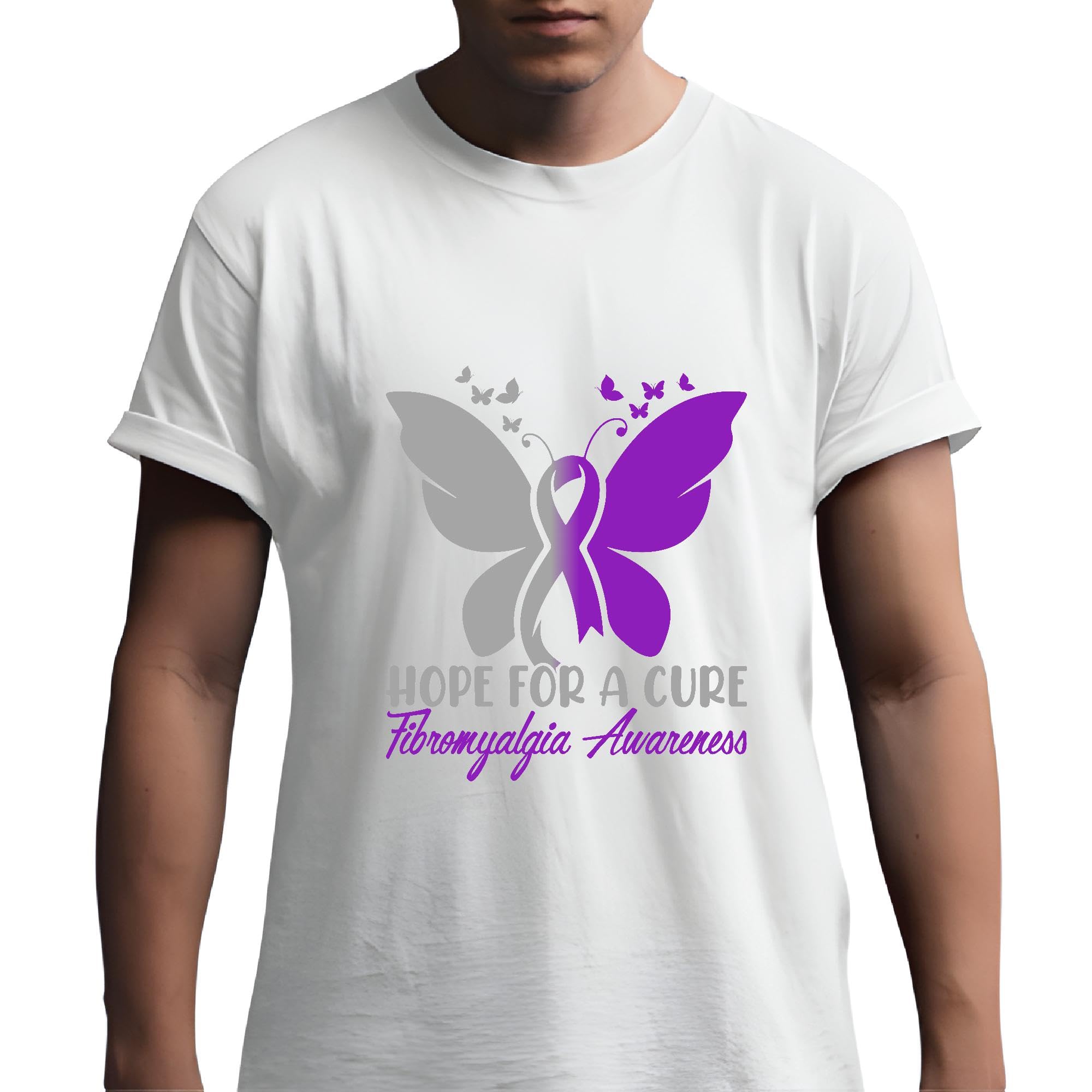 Butterfly Hope Gift for Fibromyalgia Awareness Supporters Men Women White Gray Multicolor T shirt