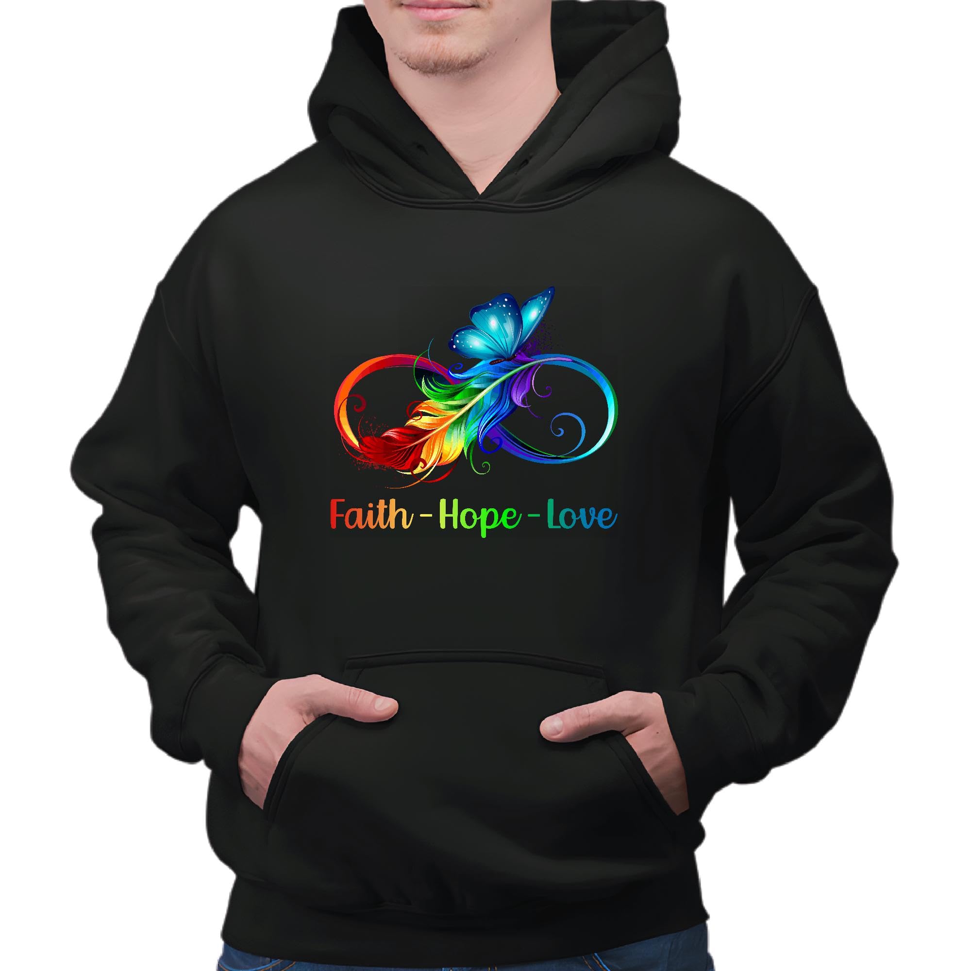 Butterfly LGBT Rainbow Faith Hope love support Equality Human Rights Black and Muticolor Unisex Hoodie