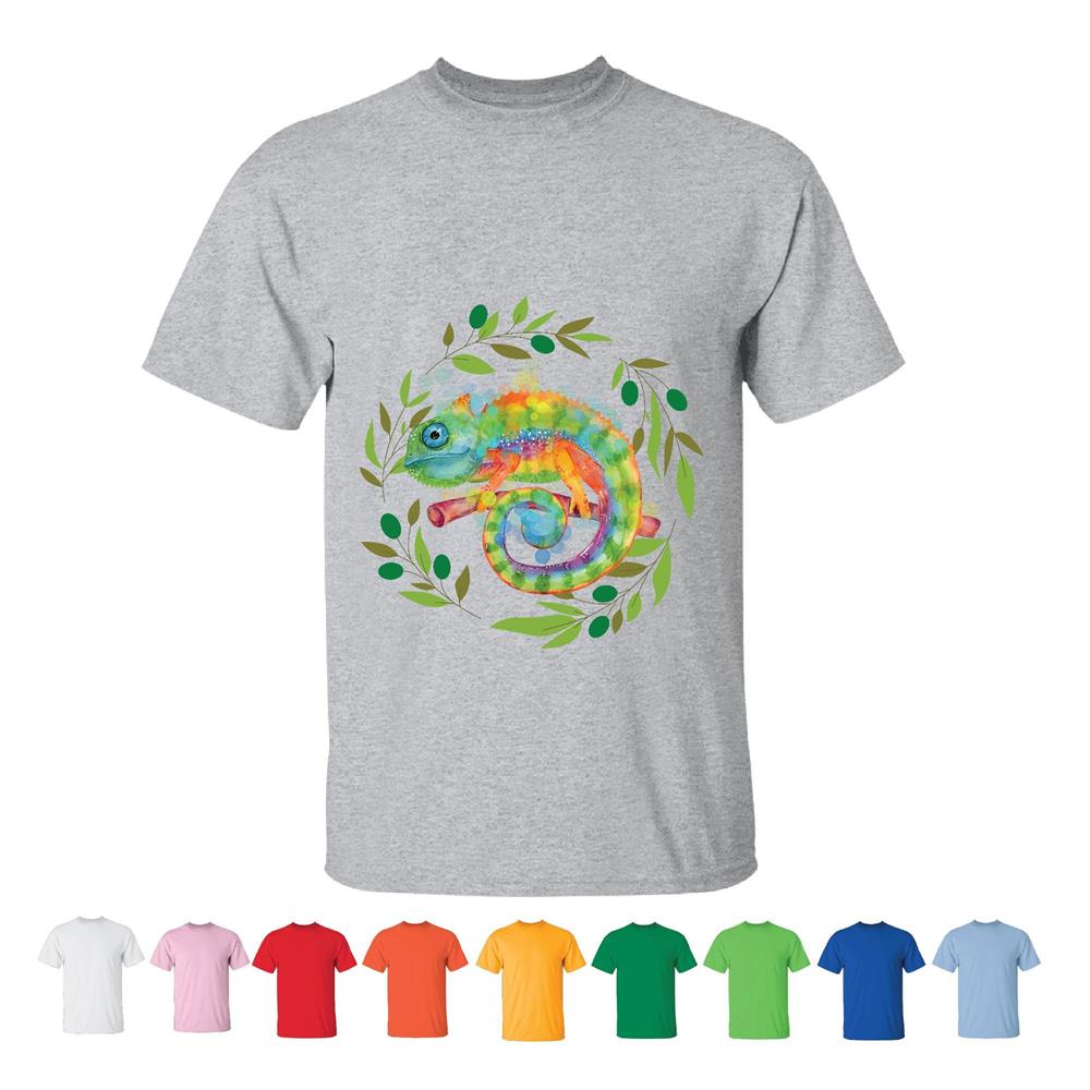 Colorful Chameleon Graphic Design Prints Artwork Men Women White Gray T shirt