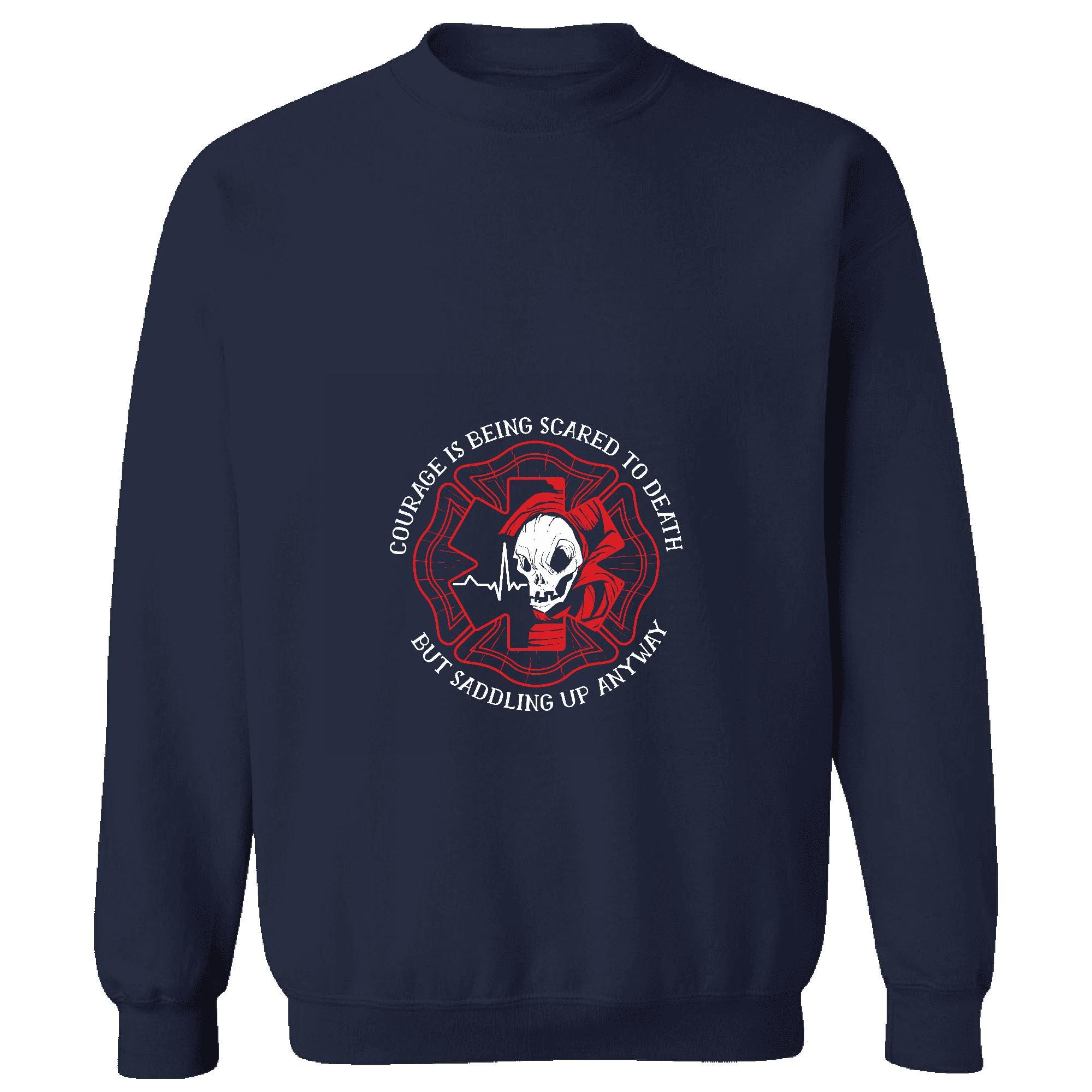 Courage Quote Gift for Firefighters Inspirational Words for Brave Heroes Navy Muticolor Unisex Sweatshirt