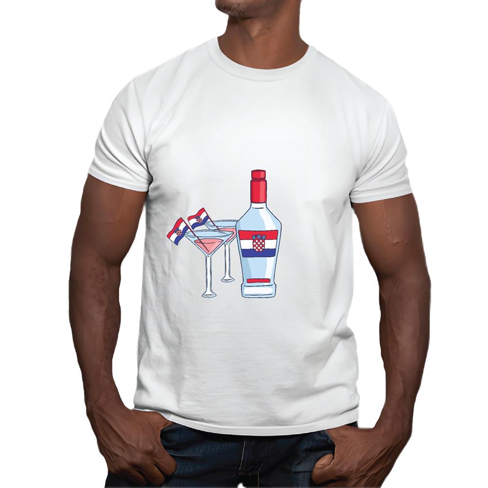 Croatia Gift Set Martinia Bottle and Two Flag Glasses Gift for Croatian Fans Men Women White Gray Multicolor T shirt