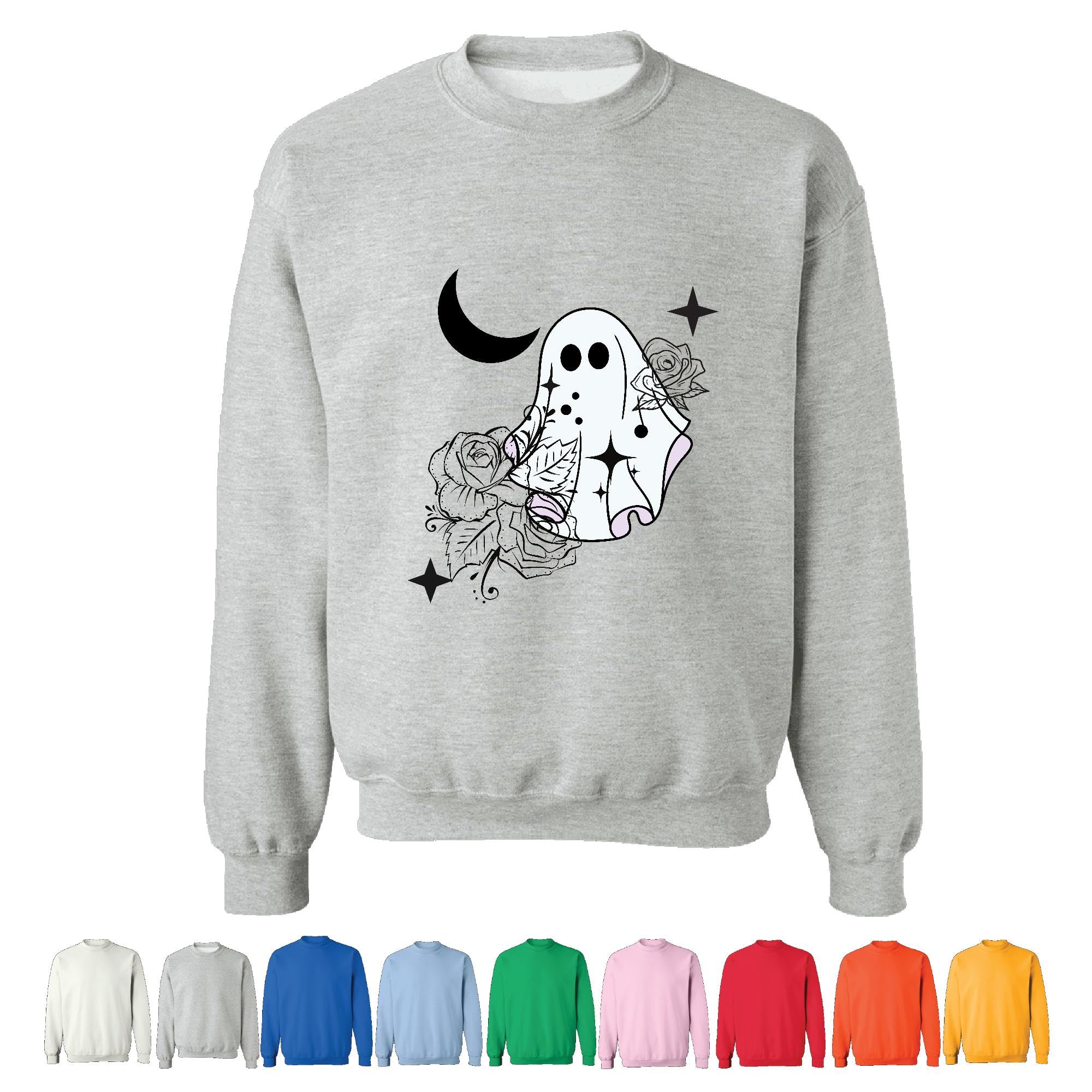 Cute Floral Ghost Boo for Kids Grey Muticolor Unisex Sweatshirt