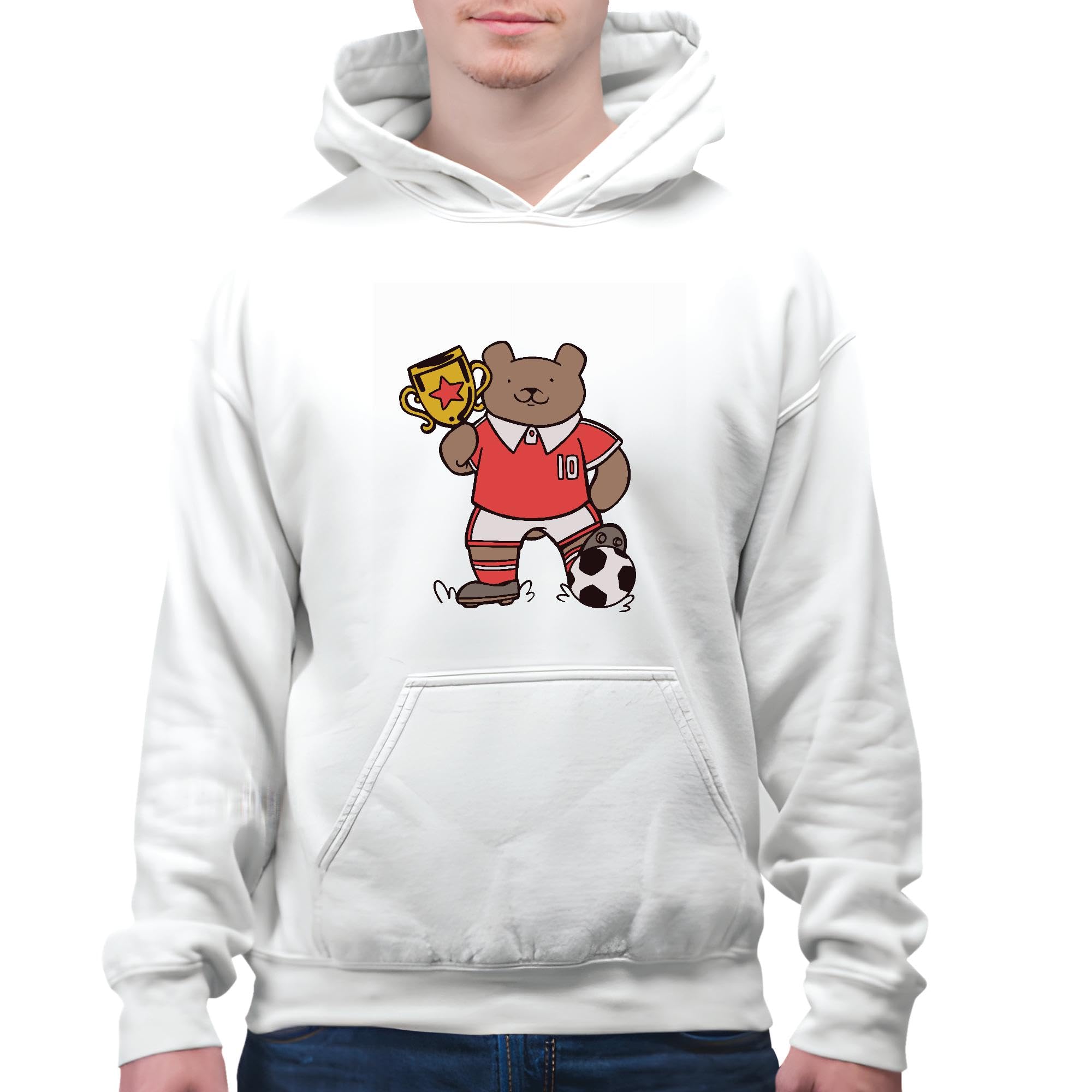 Cute Soccer Bear Gift for Soccer Fans for Kids and Adults White and Muticolor Unisex Hoodie