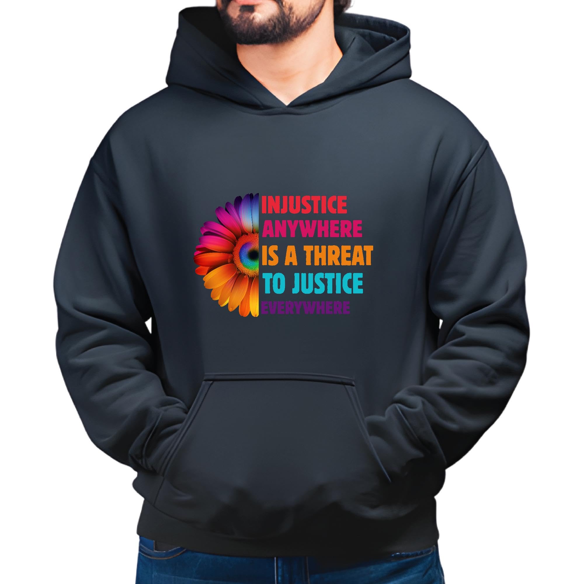 Feminist Gift Injustice Anywhere Threat Justice Everywhere Support Black and Muticolor Unisex Hoodie