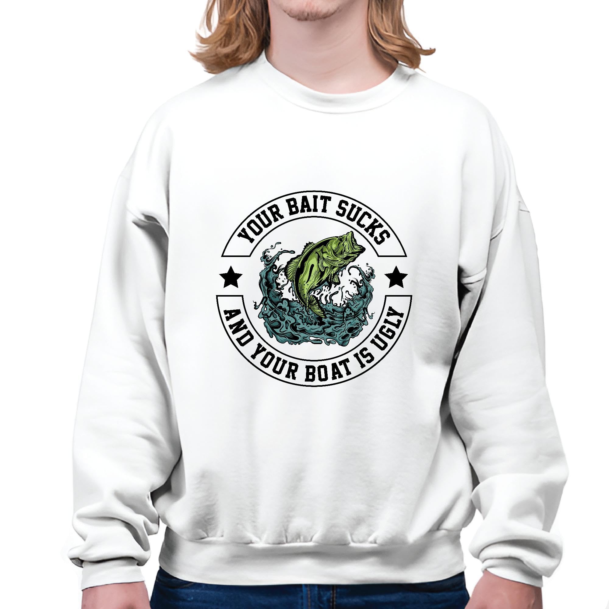 Funny Fisherman Gift Fishing Humor Your Bait Sucks Your Boat is Ugly Grey White Muticolor Unisex Sweatshirt